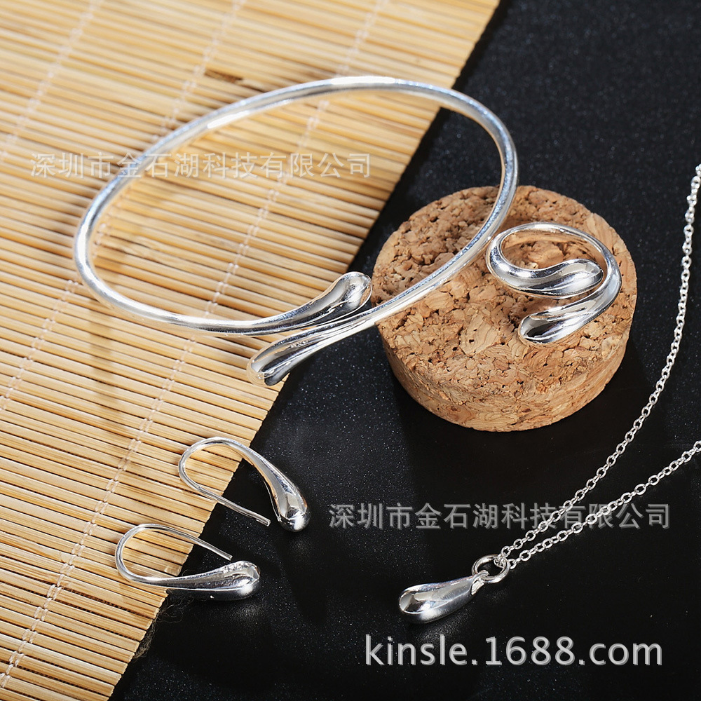 | nameOriginal | Spot European and American fashion silver-plated exquisite water drop bracelet necklace earrings ring water drop set from a set of batch |