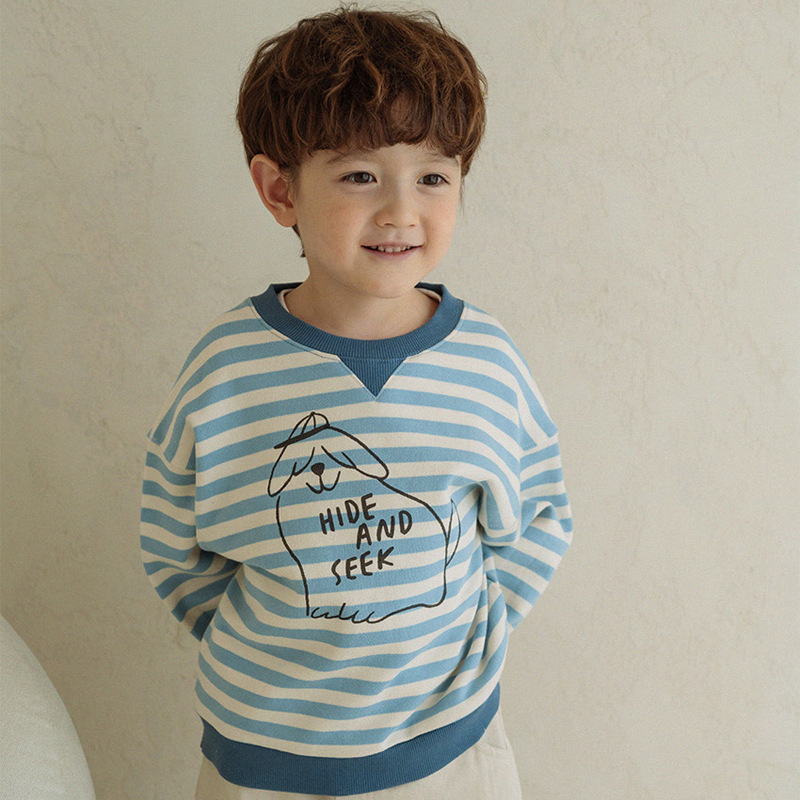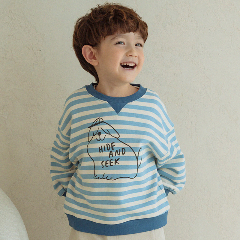 | nameOriginal | Spot goods 2023 spring new PS children's Korean-style top small boys and girls cartoon puppy printed striped sweater |