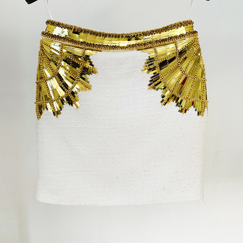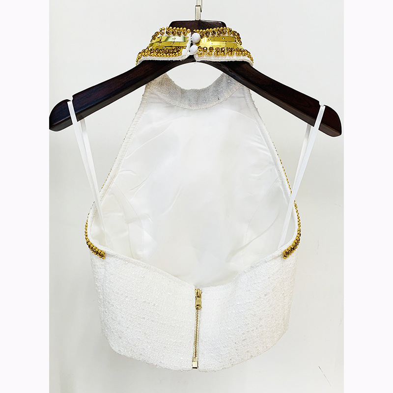 | nameOriginal | Spot goods 2024 European and American stars fashion new heavy industry beaded diamond metal piece halter vest top skirt |