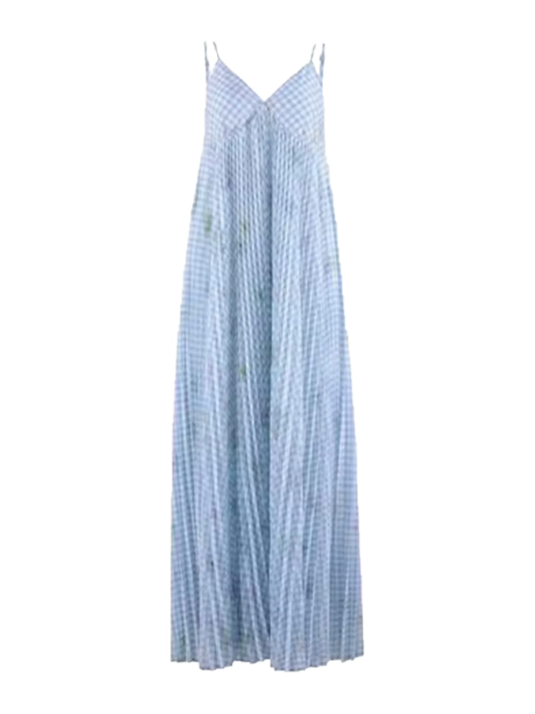 | nameOriginal | Spot goods! Blue Plaid Suspender Dress Women's Summer French Loose Crumpled A-Line Skirt Seaside Vacation Skirt |
