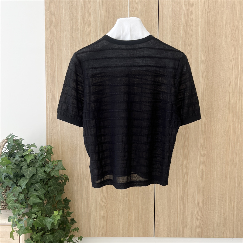 | nameOriginal | Spot Heavy Industry Rope Woven Strip Round Neck Worsted Cashmere Short Sleeve Top Elegant Pullover 8454 |