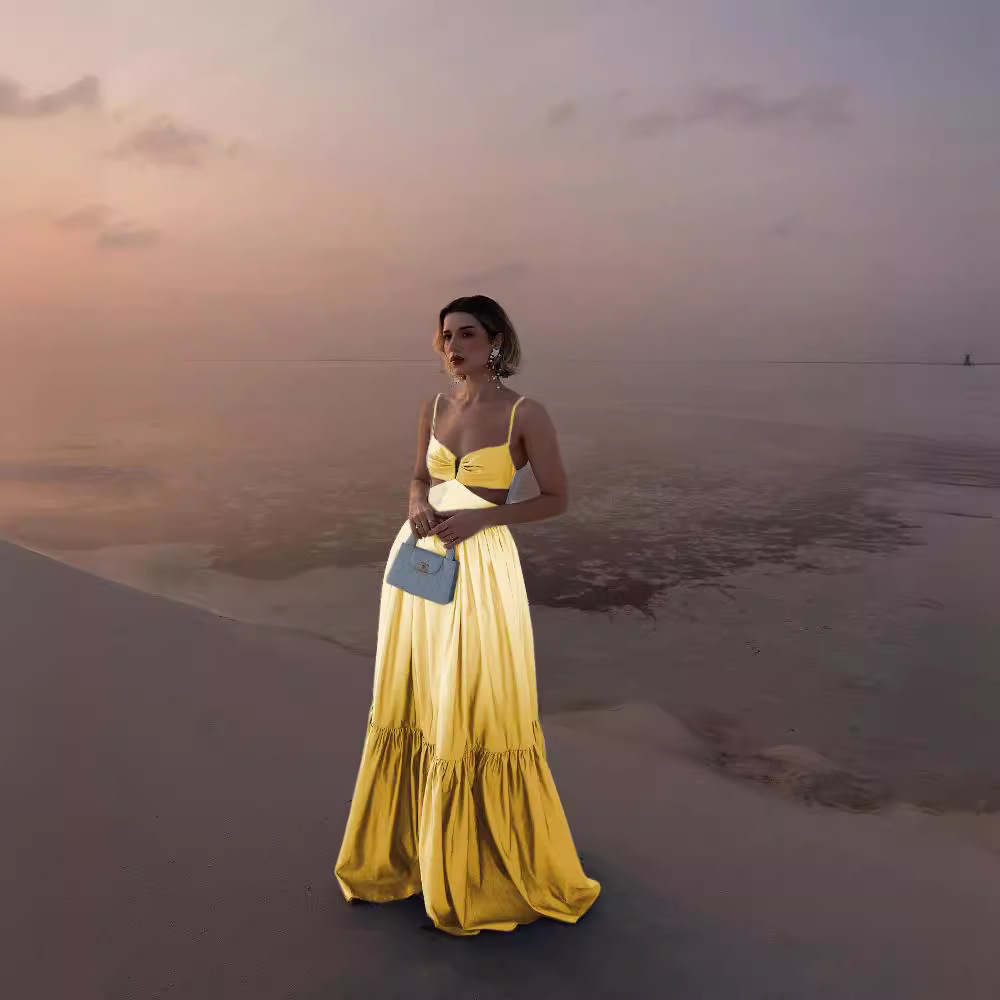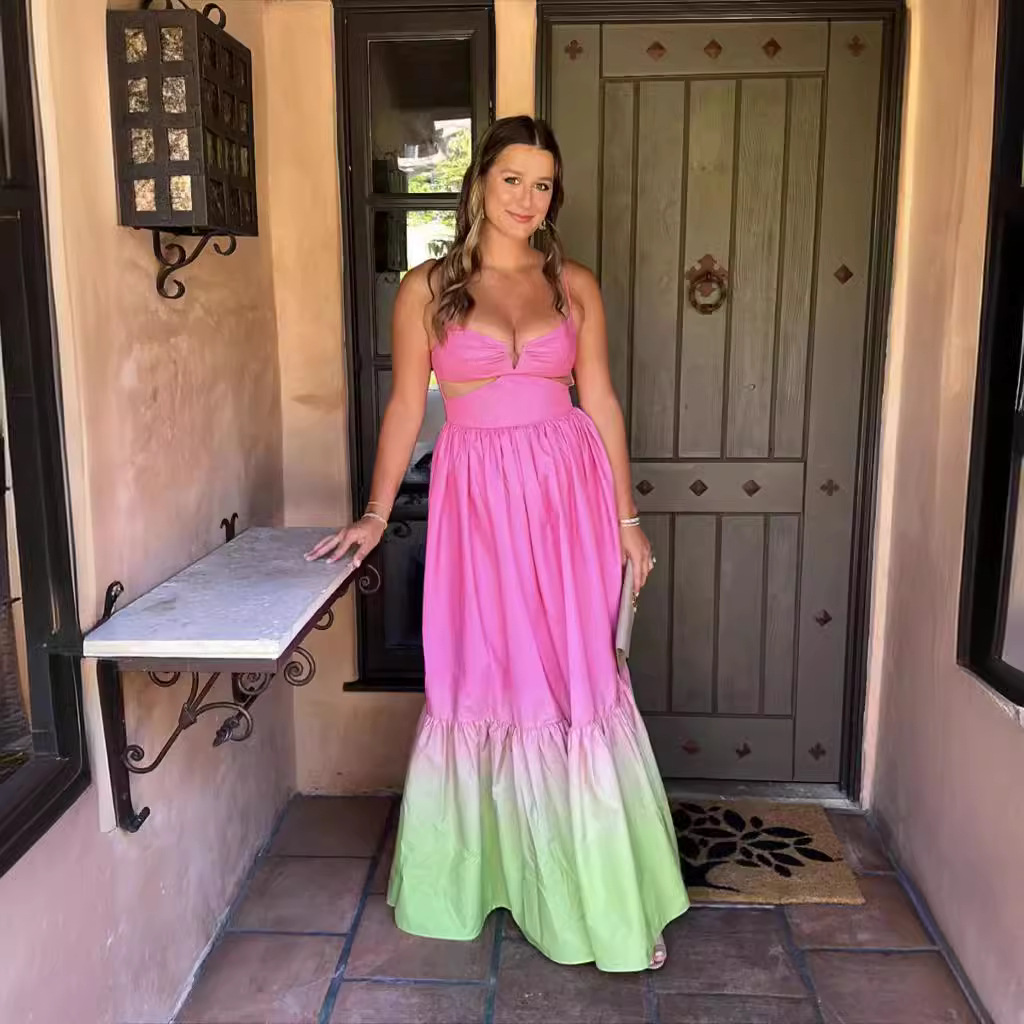 Spot independent station cross-border hot summer new strap gradient backless sleeveless slim dress