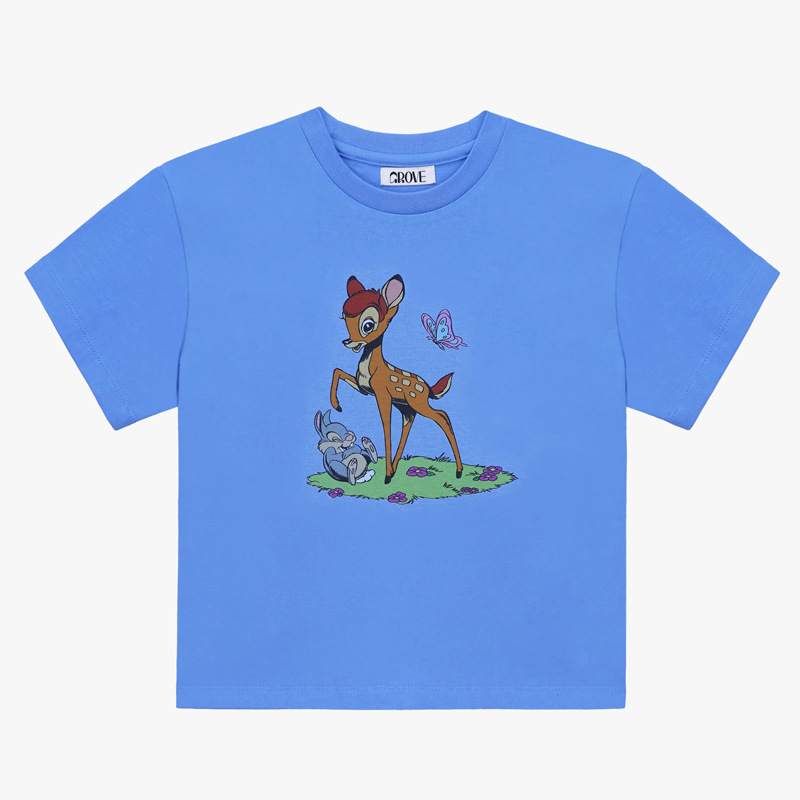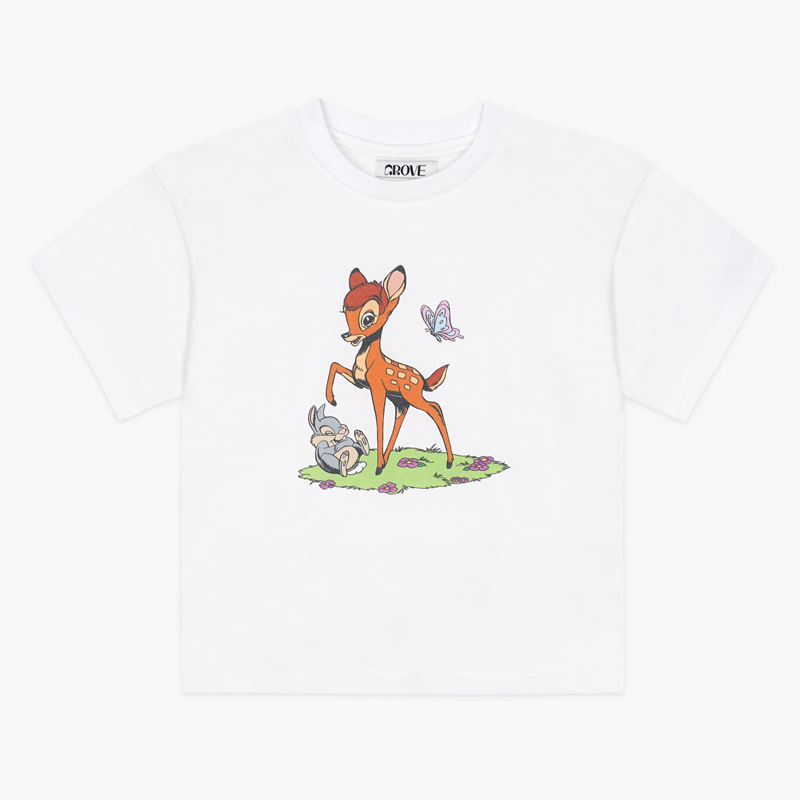 Spot Korean Women’s Clothing Dongdaemun GROVE New Deer Printed Pure Cotton Round Neck Short Sleeve T-Shirt Short Top