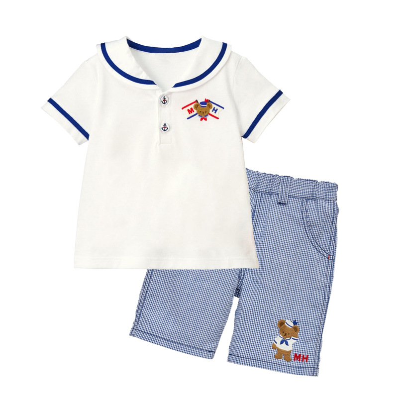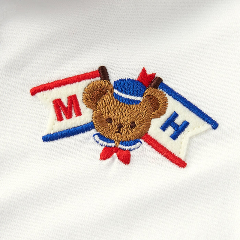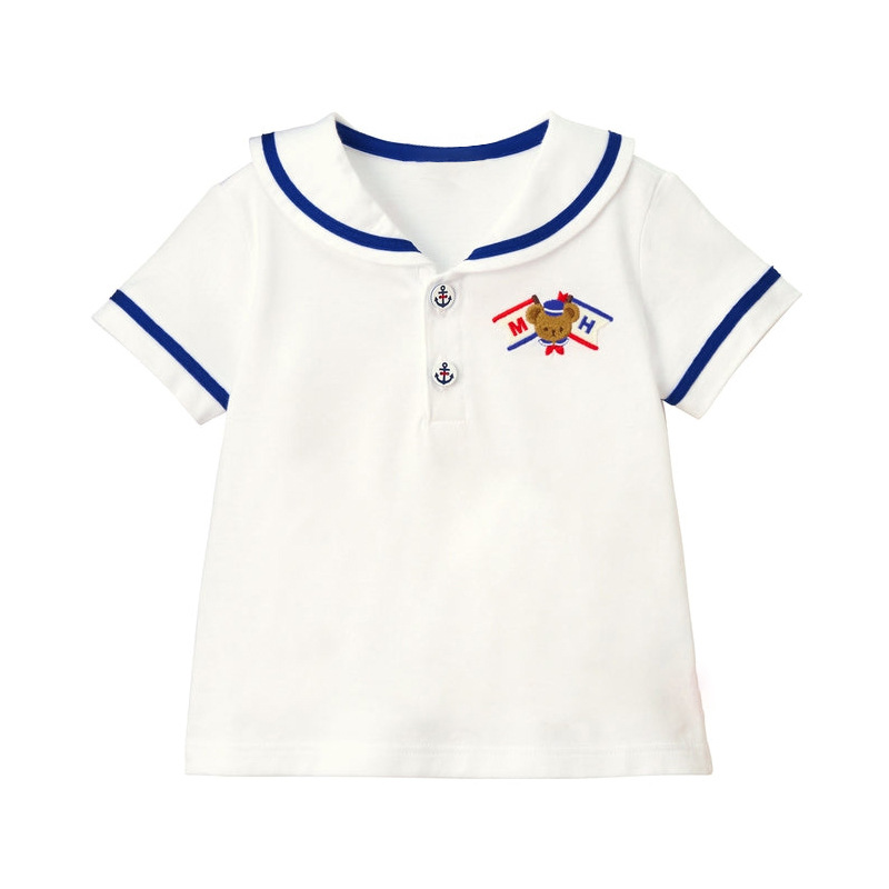 | nameOriginal | Spot miki children's clothing new boys and girls cartoon bear letter embroidery navy collar short sleeve shirt with hair generation |
