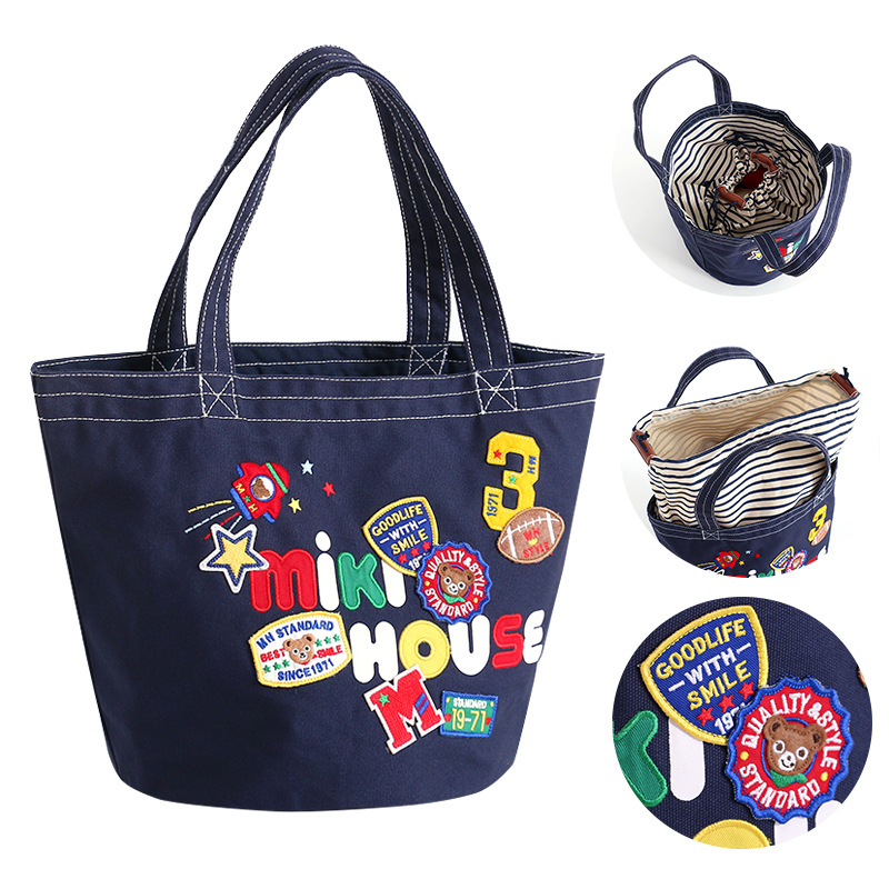 | nameOriginal | Spot miki Mummy Bag New Cartoon Badge Bear Letter logo Embroidered Handbag Large Capacity Canvas Bag |