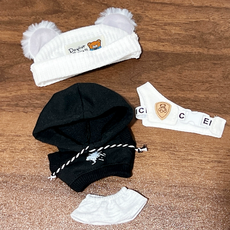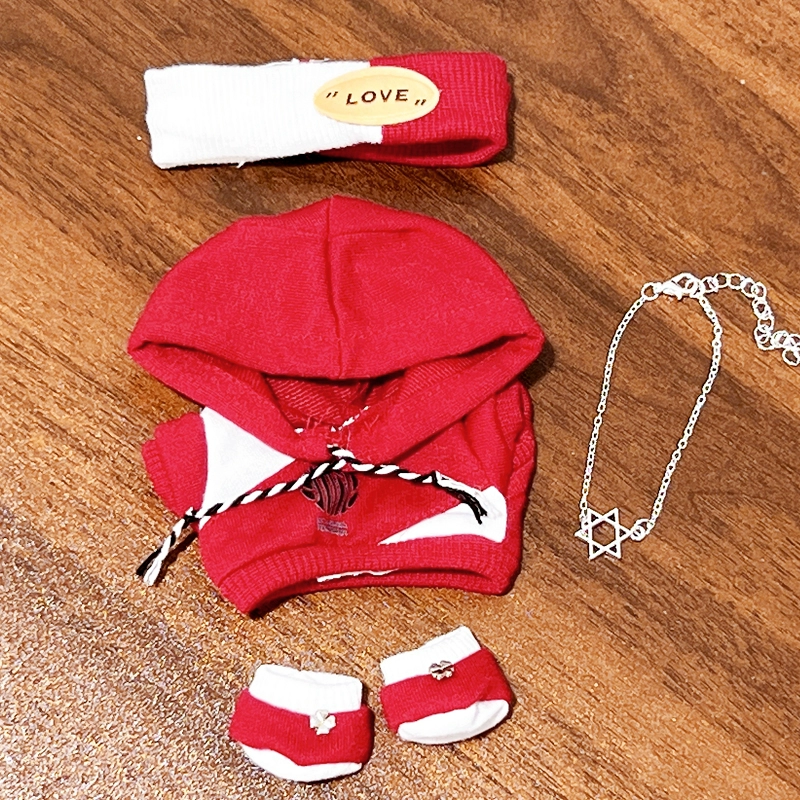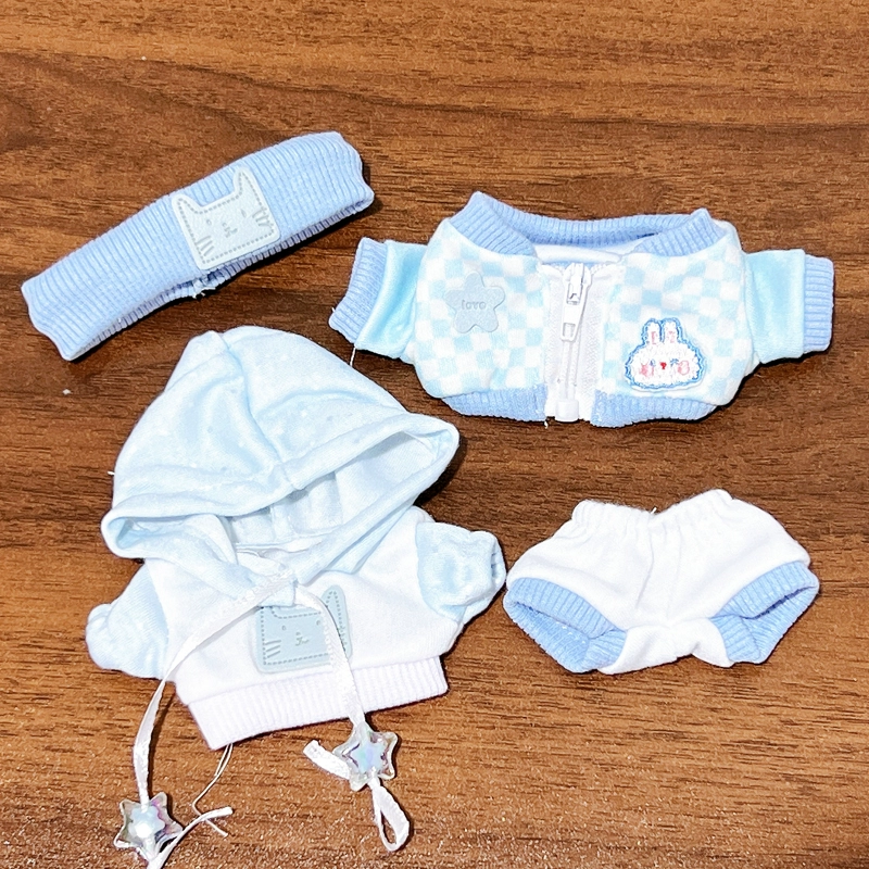 Spot new 10cm baby clothes suit boy sweatshirt pants hairband dress up plush toy starfish doll
