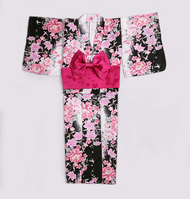 Spot! Pink Kimono Bathrobe Women’s Kimono Japanese Style Firework Assembly Bathrobe + Belt Set Full Set