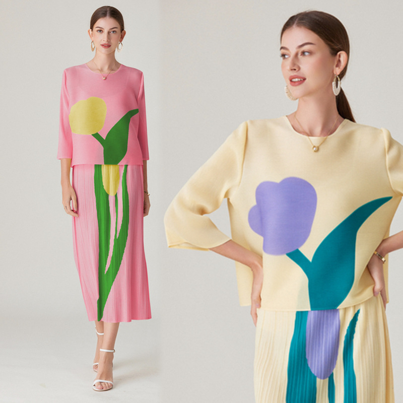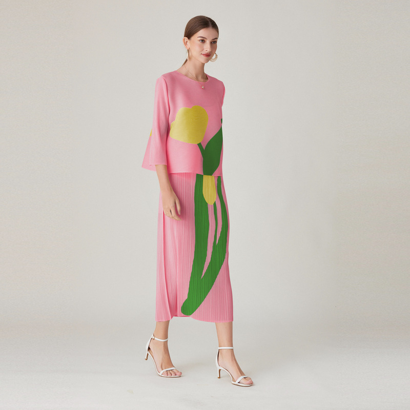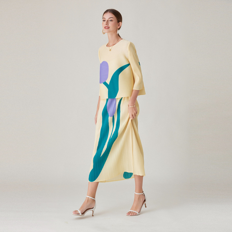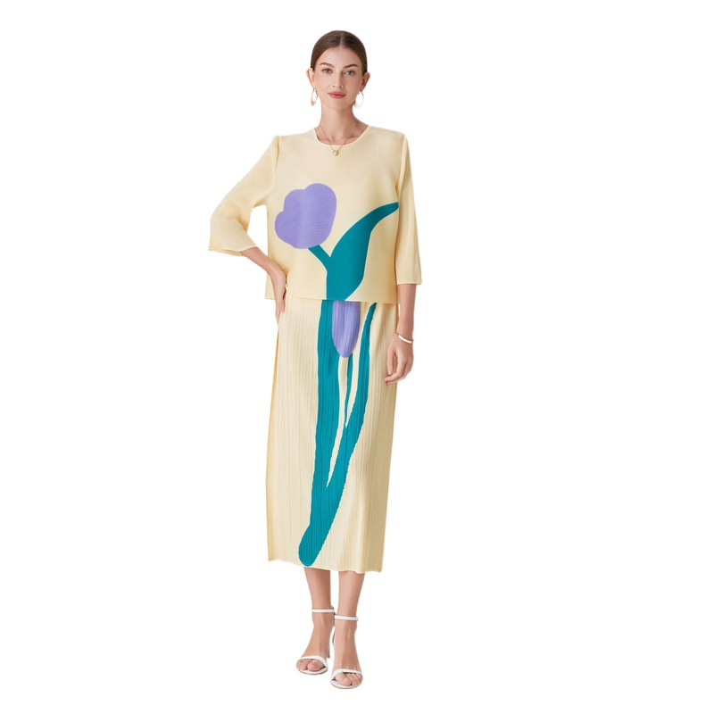 | nameOriginal | Spot real shot-Miyake pleated 2024 spring niche retro printed pleated skirt |