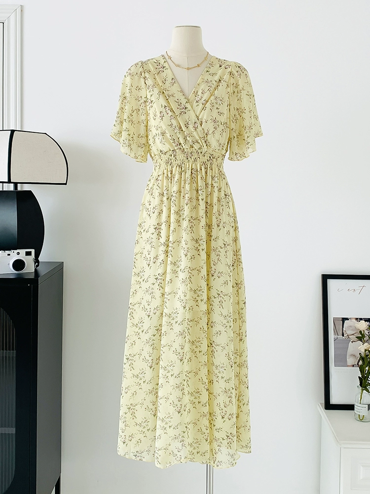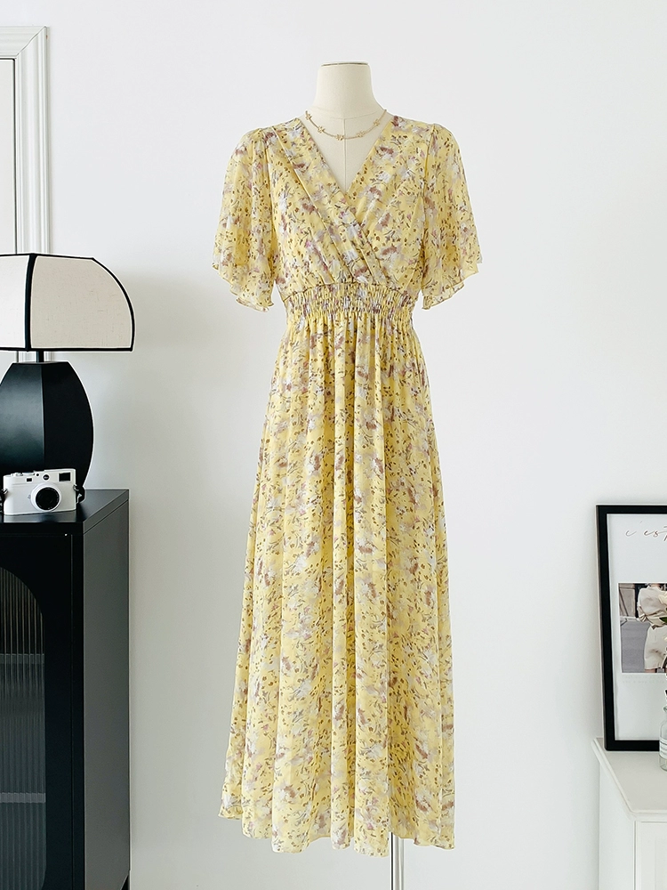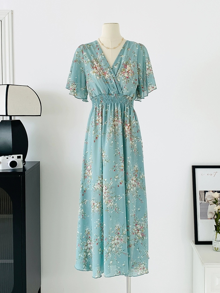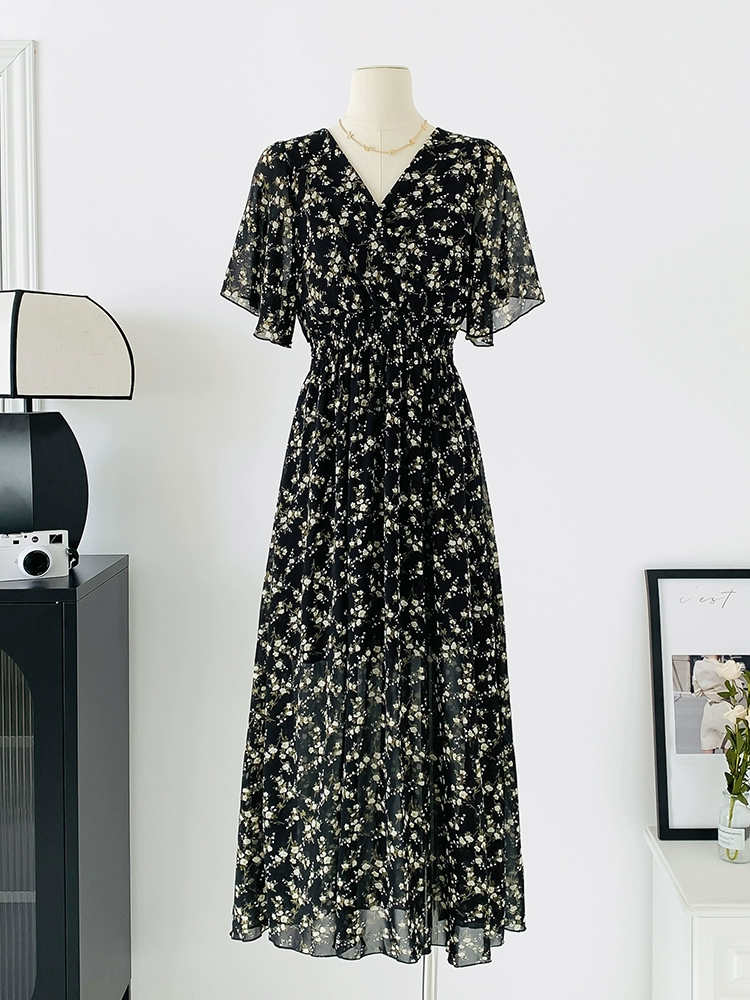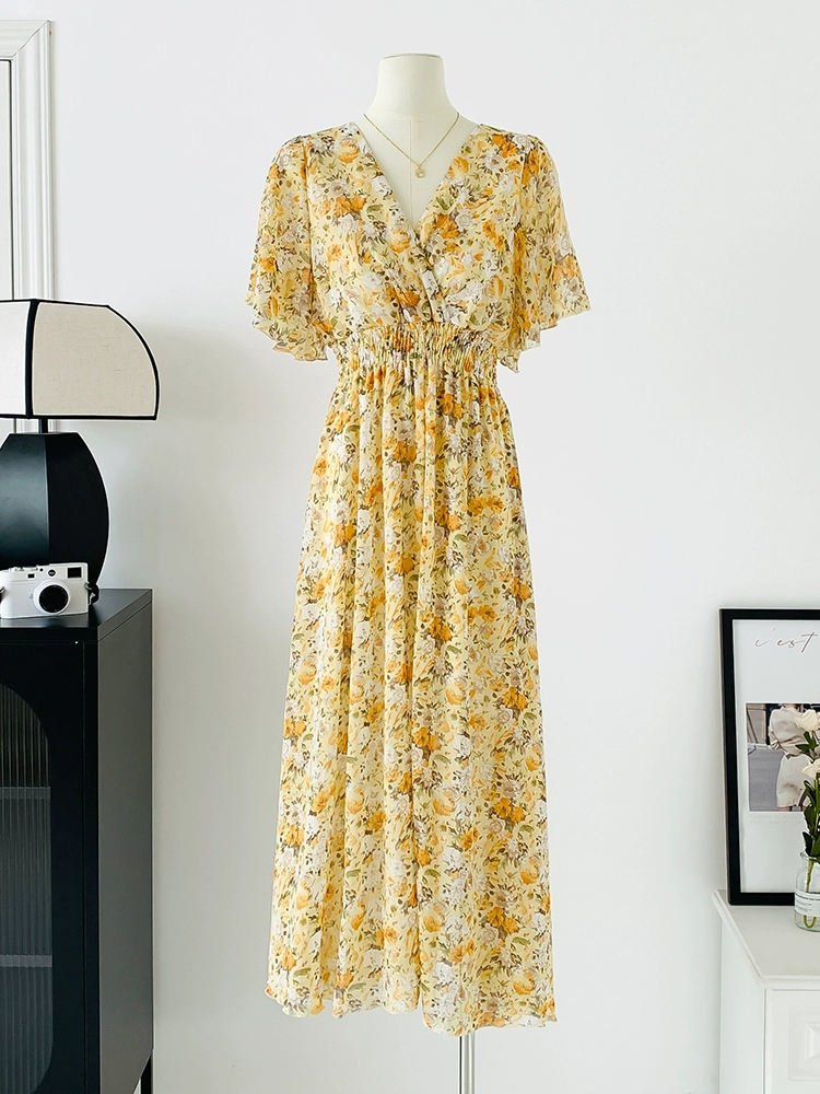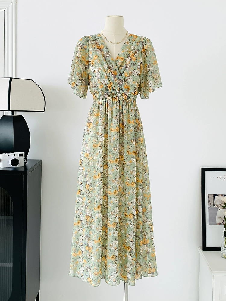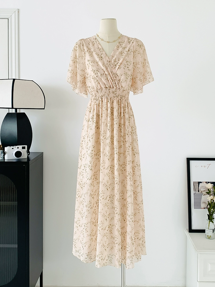 | nameOriginal | Spot real shot seaside vacation dress women's summer sexy V-neck waist slimming long chiffon floral beach dress |