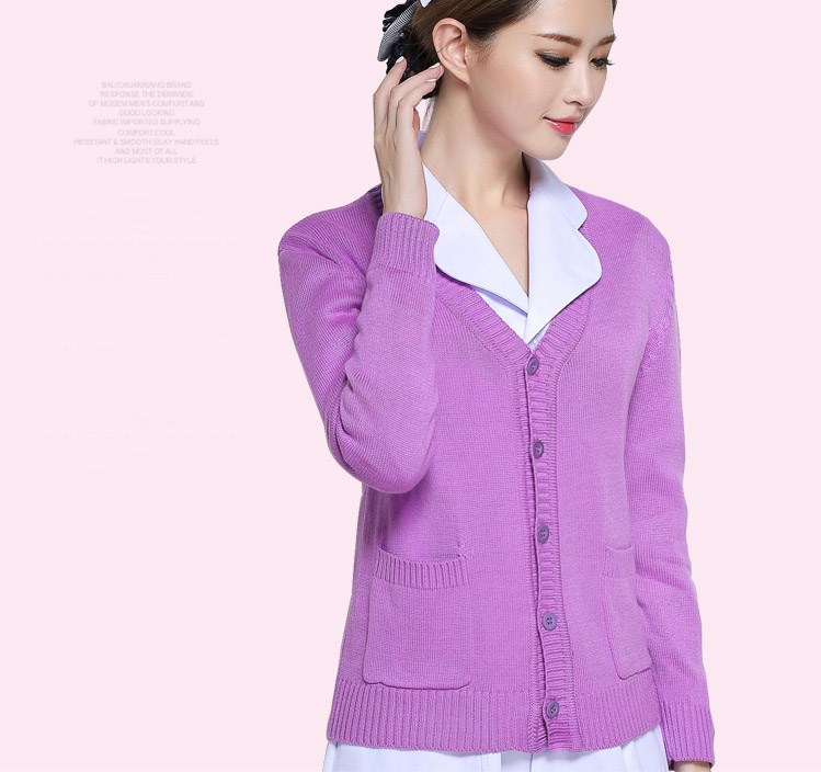 | nameOriginal | Spot supply of nurses sweater purplish blue beauty salon hospital nurses sweater outside wear autumn and winter warm cardigan care |