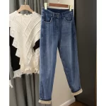 | nameOriginal | Spot thickened light blue dad autumn and winter jeans |