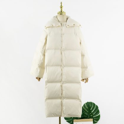 | nameOriginal | Spot White Baihe with high collar long sleeve long straight bread clothing loose winter cold white down jacket |