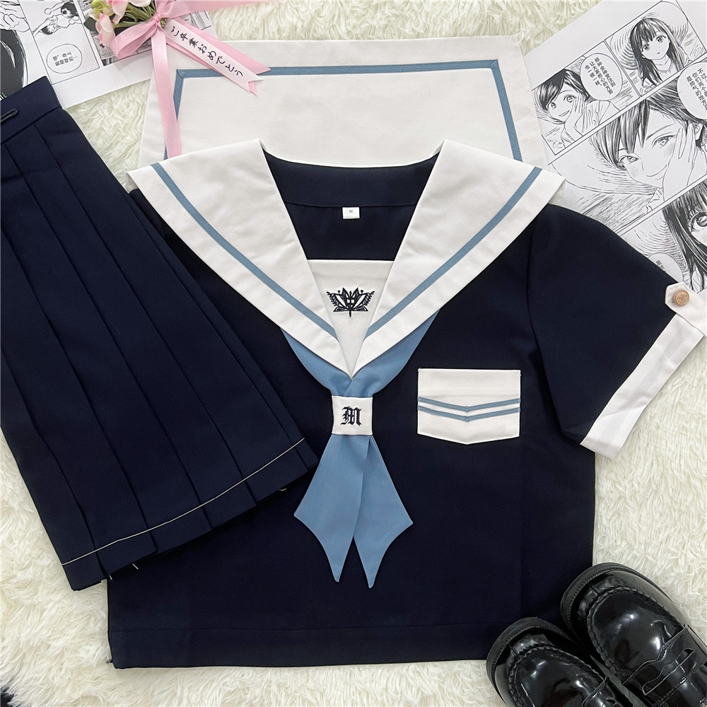 | nameOriginal | Spot wholesale [Deep Sea polar night] original cyanotic sailor suit jk uniform set short sleeve summer jacket basic |