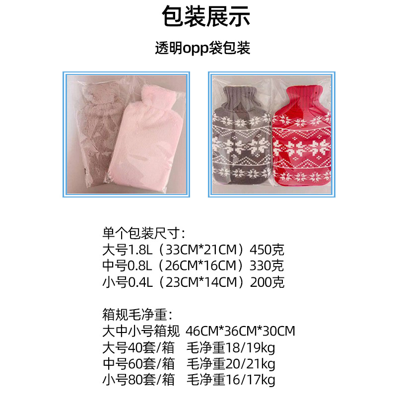 | nameOriginal | Spot wholesale European standard BS warm water bag knitted water injection rubber plush hot water bag Korean removable and washable warm water treasure |