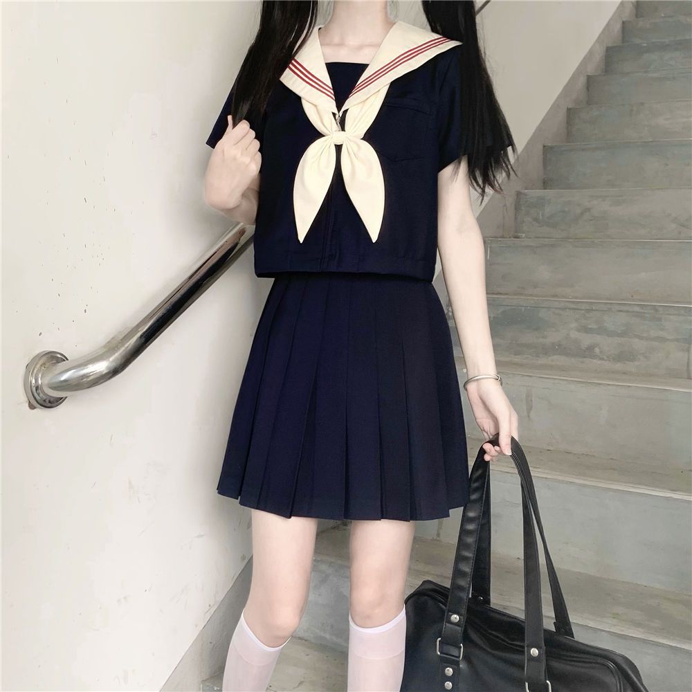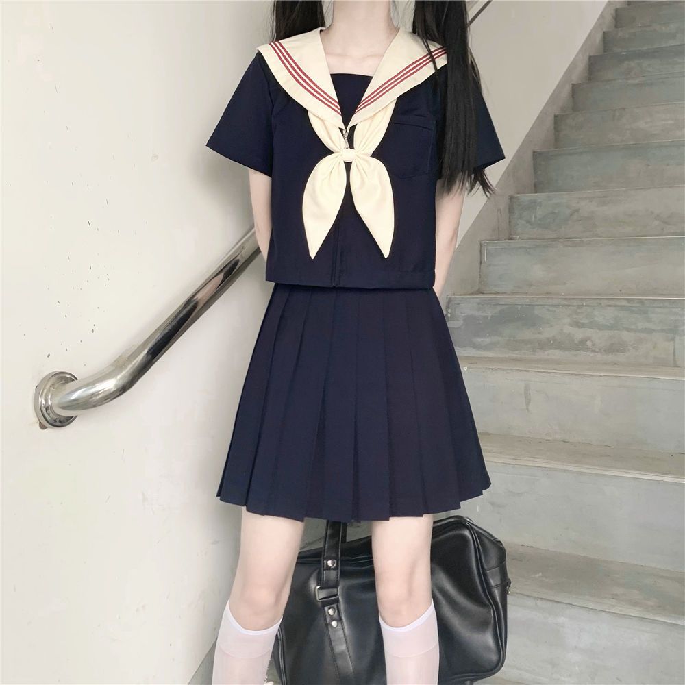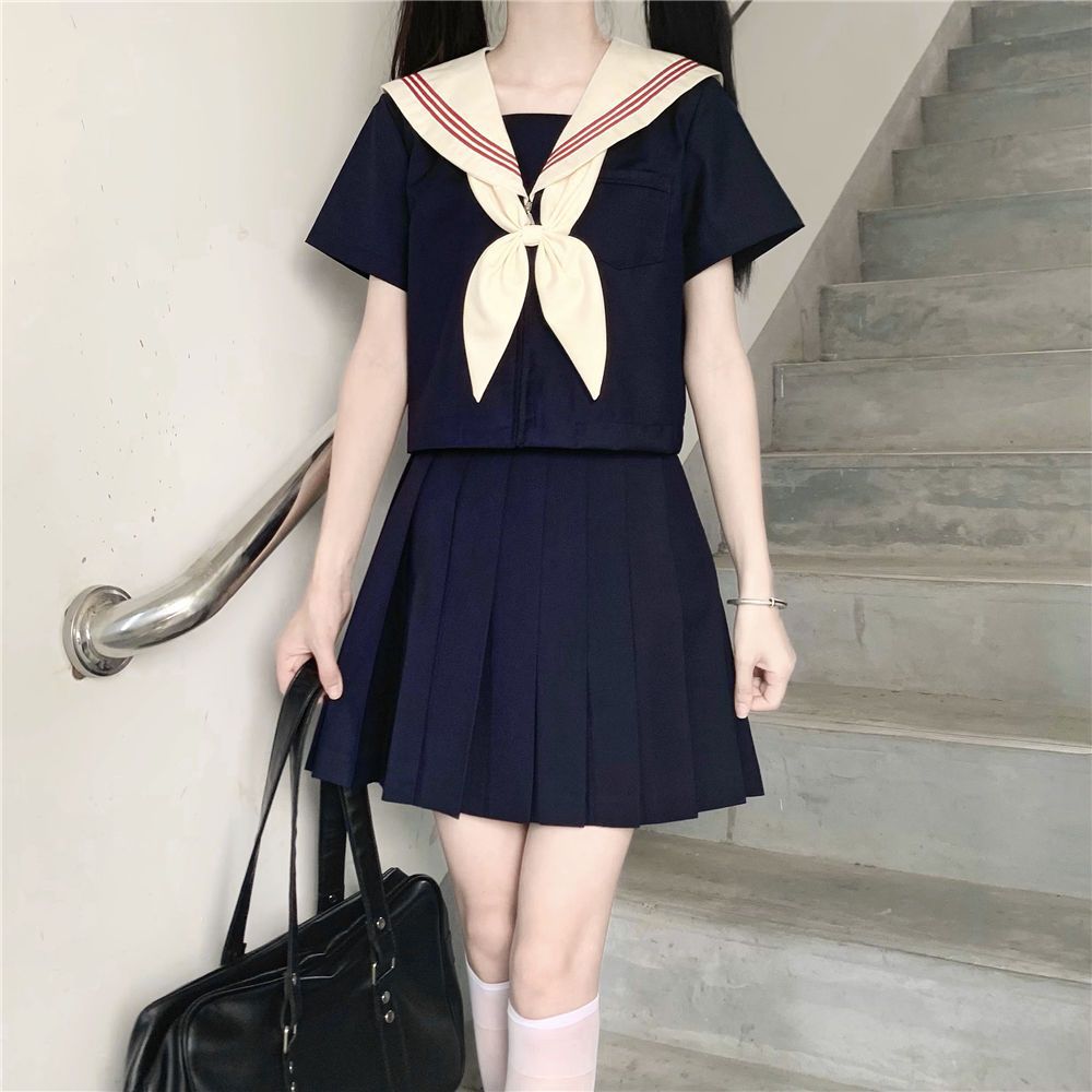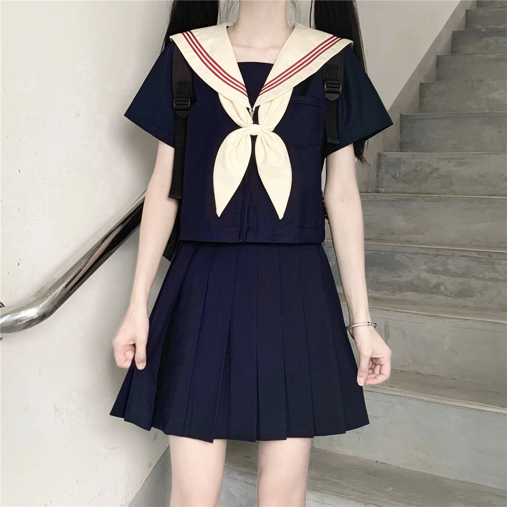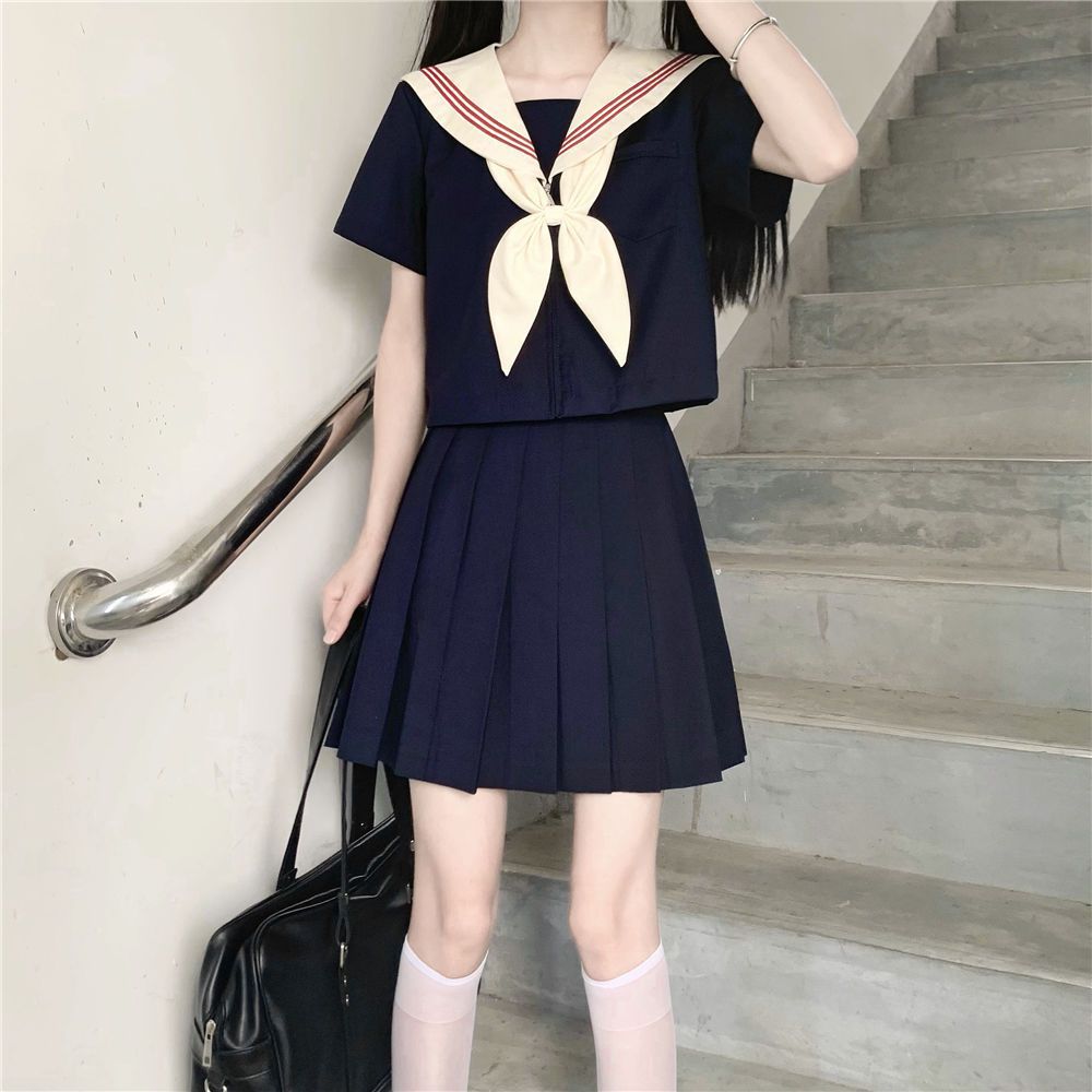 | nameOriginal | Spot wholesale original jk uniform skirt genuine suit rice collar blue color three basic sailor suit pleated skirt |