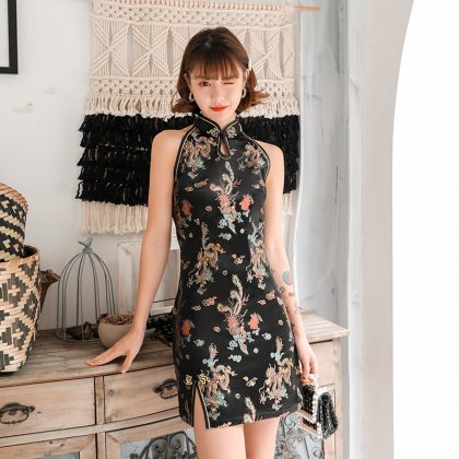 | nameOriginal | Spring 2023 new cheongsam improved stand collar sleeveless split printed hip sexy dress women's hair generation |