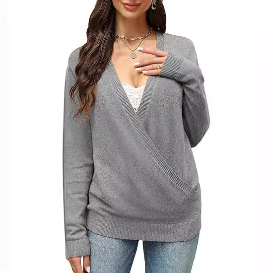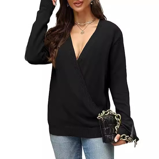 Spring 2024 cross-border ebay Amazon wish wool long sleeve large V-neck long sleeve T-shirt women’s loose top