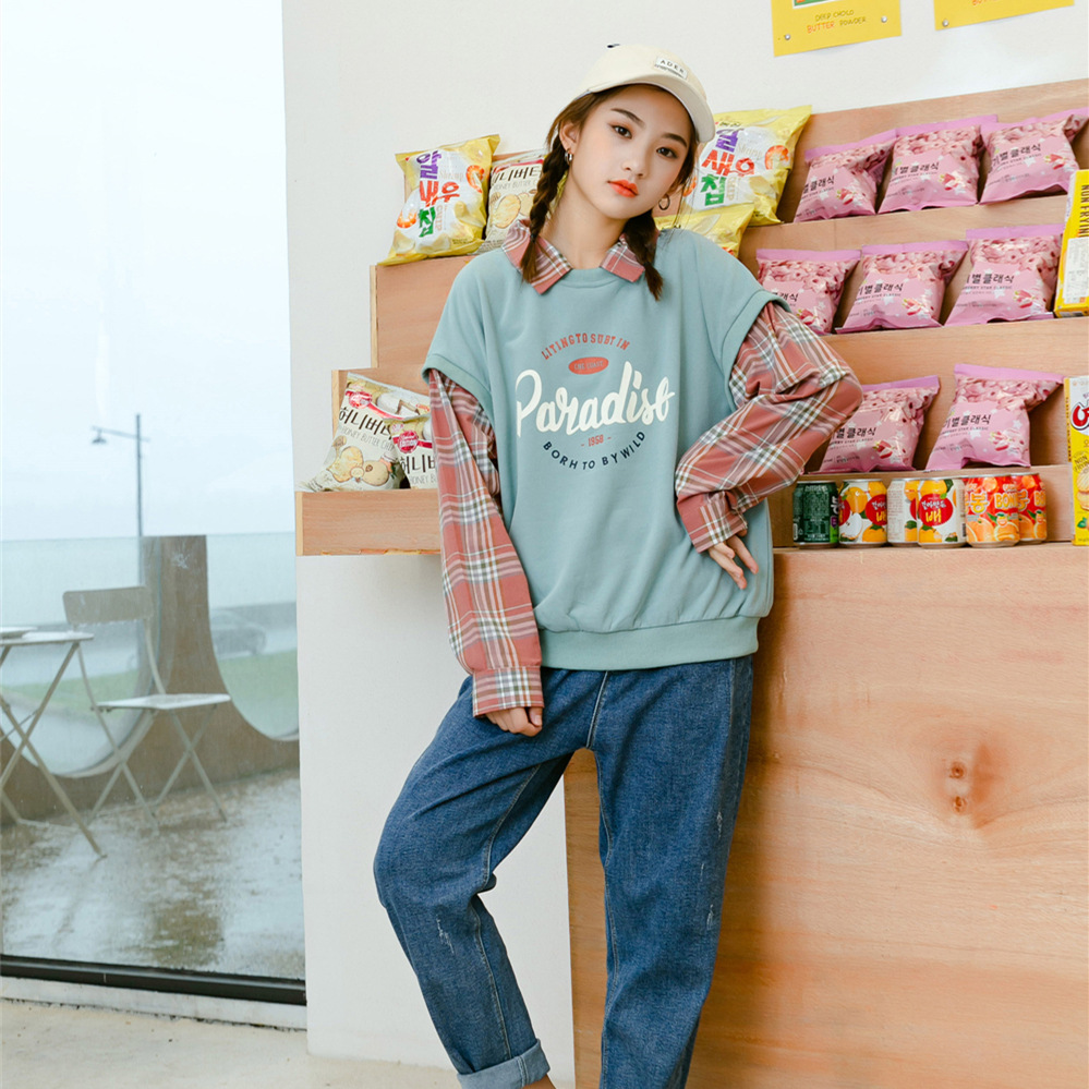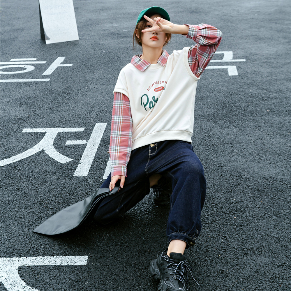 | nameOriginal | Spring 2024 Korean version of children's sweater fake two-piece letter printed large children's top cute plaid girls' sweater |