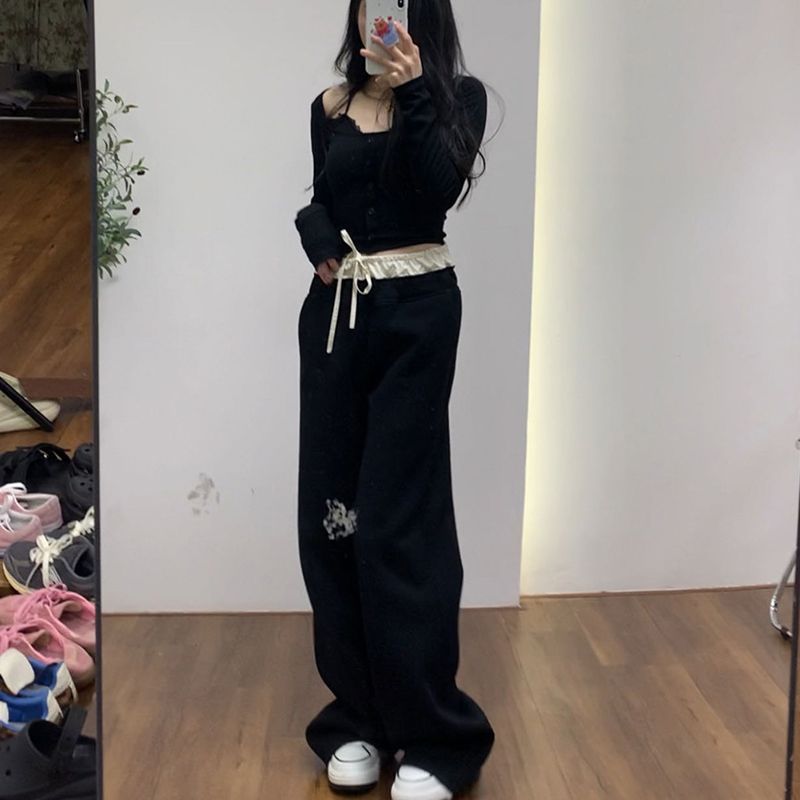 | nameOriginal | Spring 2024 New All-match Dagging Wide-leg Pants American-style High Waist Design Ruffled Sports Casual Long Pants |