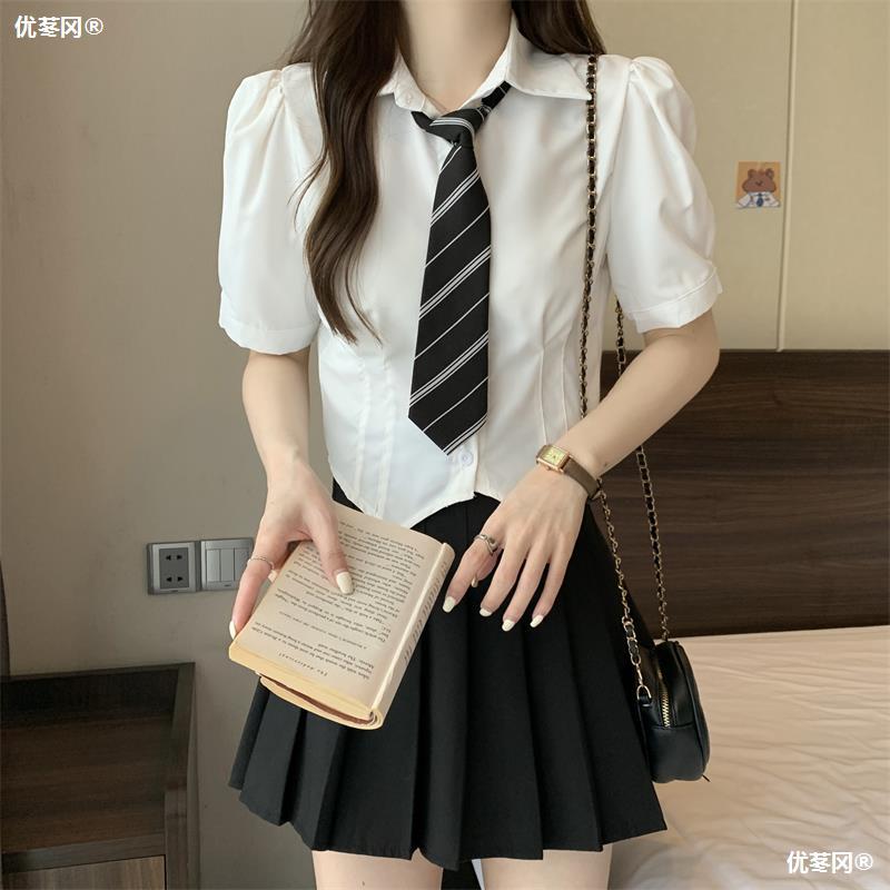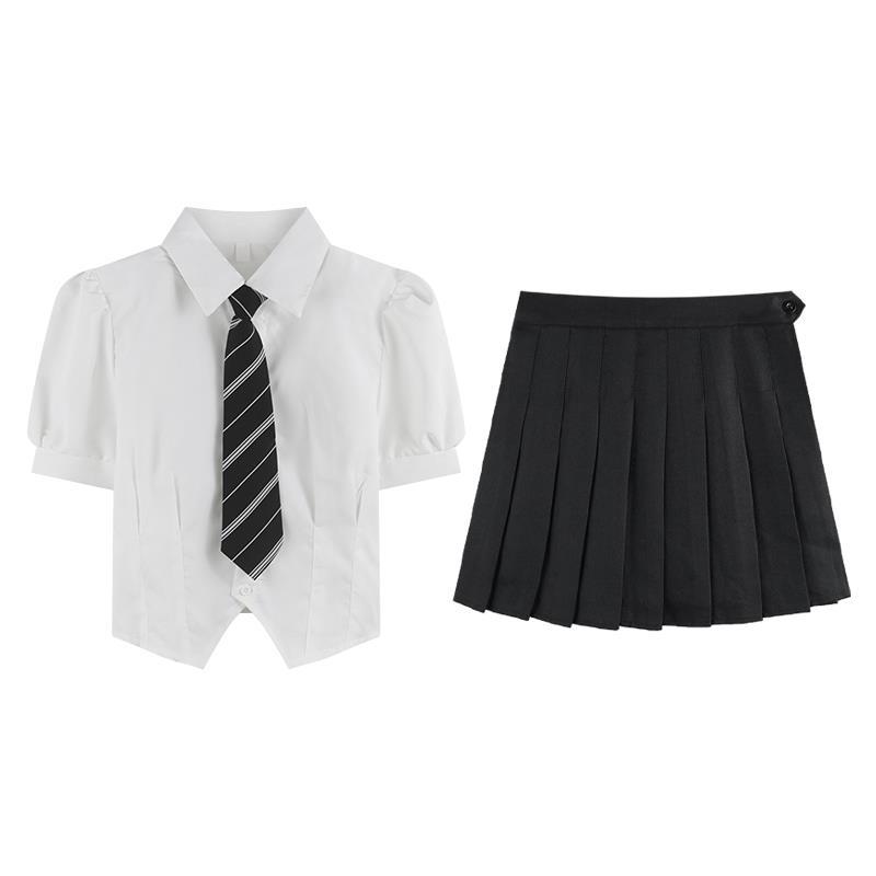 | nameOriginal | Spring 2024 New All-match Short Shirt Women's Tie Black Pleated Half-length Short Skirt Two-piece Suit |