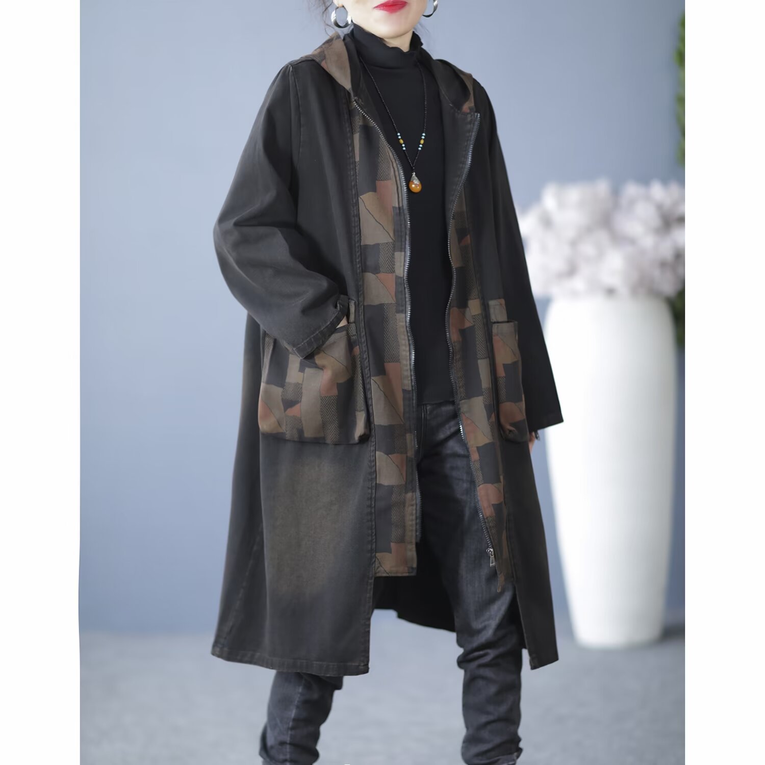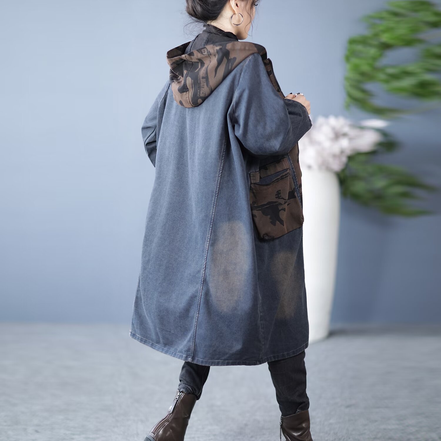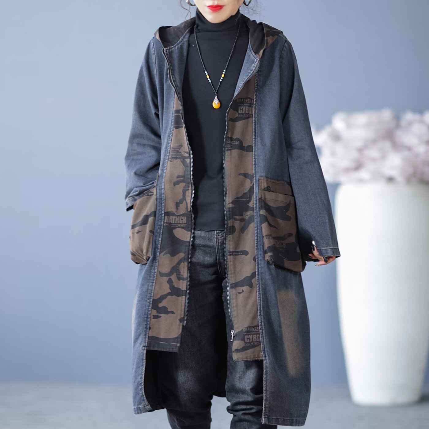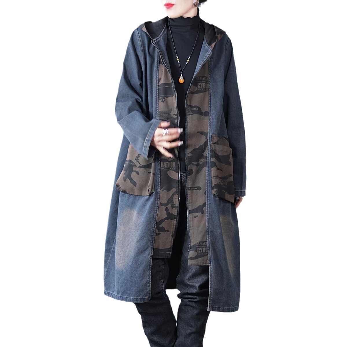 | nameOriginal | Spring 2024 new artistic versatile loose casual plus size stitching hooded mid-length Denim coat for women |