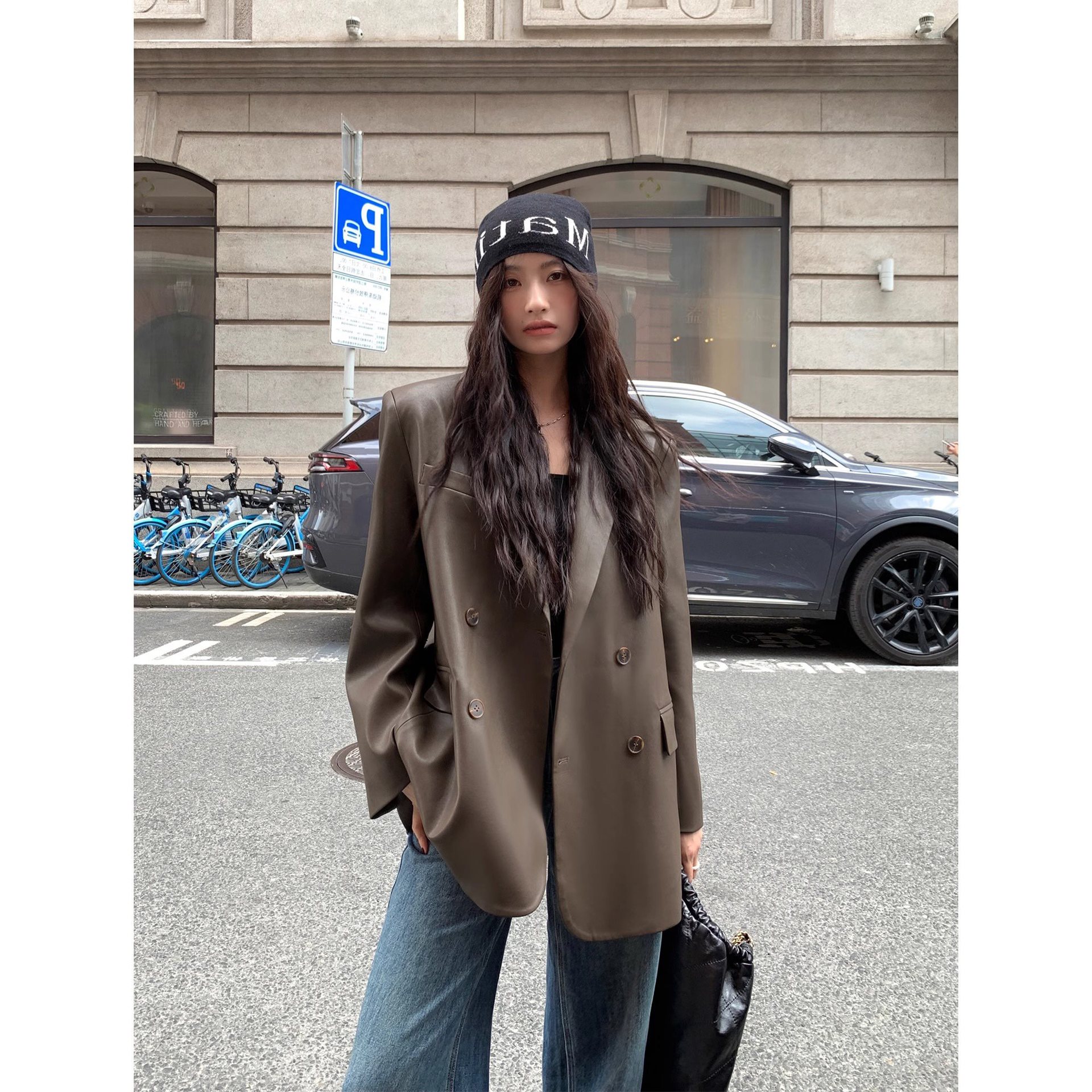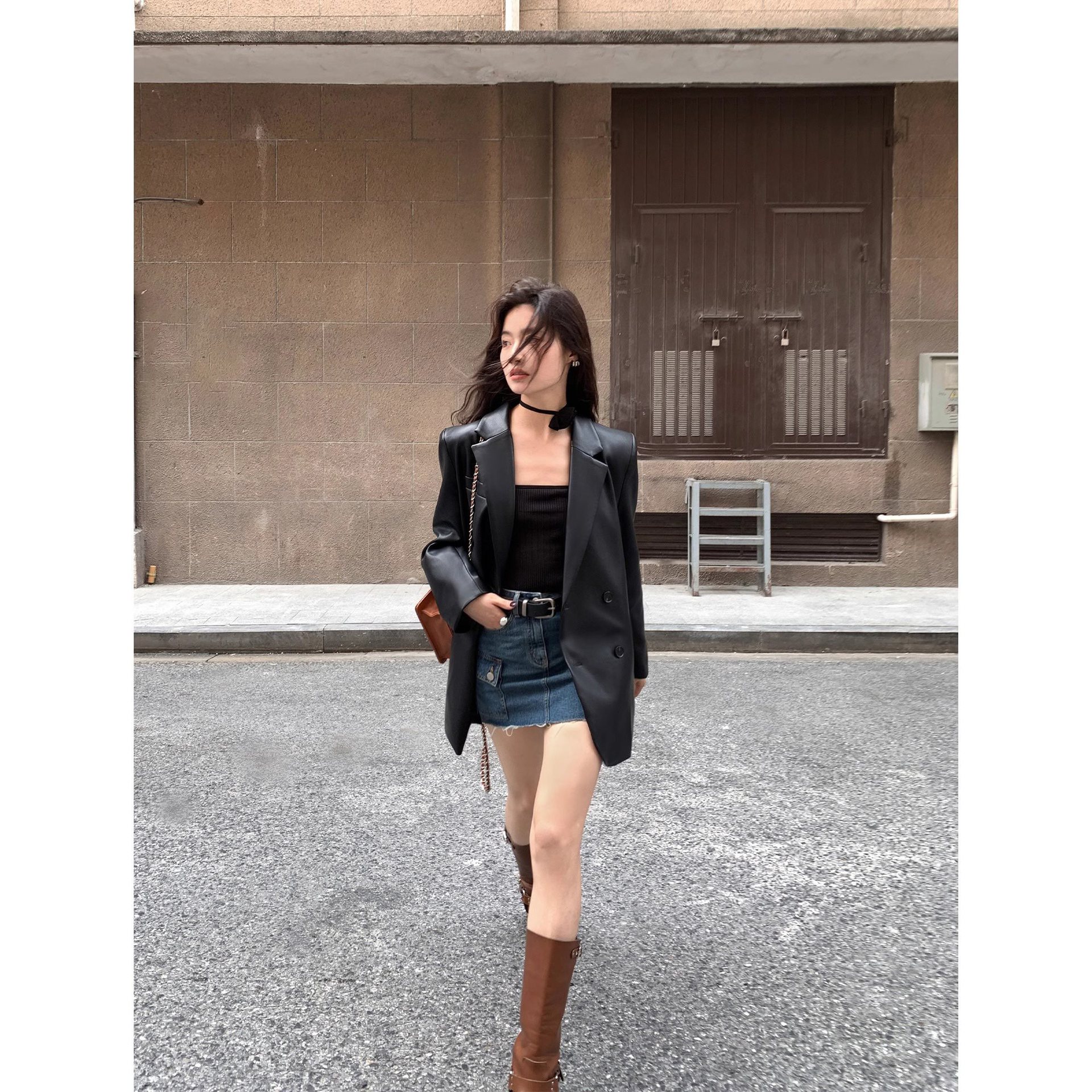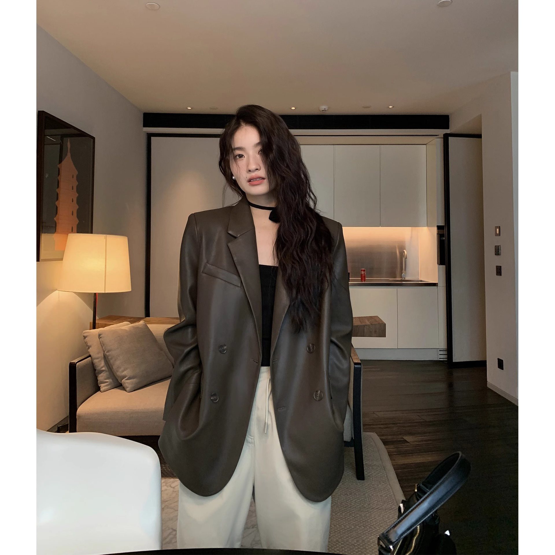 | nameOriginal | Spring 2024 New Black Retro PU Leather Suit Jacket Women's Loose Casual Elegant High-end Top for Women |