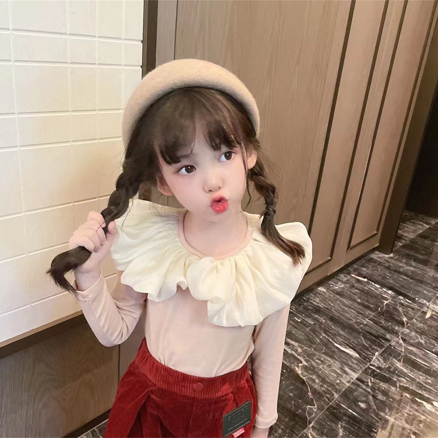 | nameOriginal | Spring 2024 New Children's Long Sleeve Western Style Top Large Laps Trendy Girls Children's Solid Color Base Shirt 33053 |