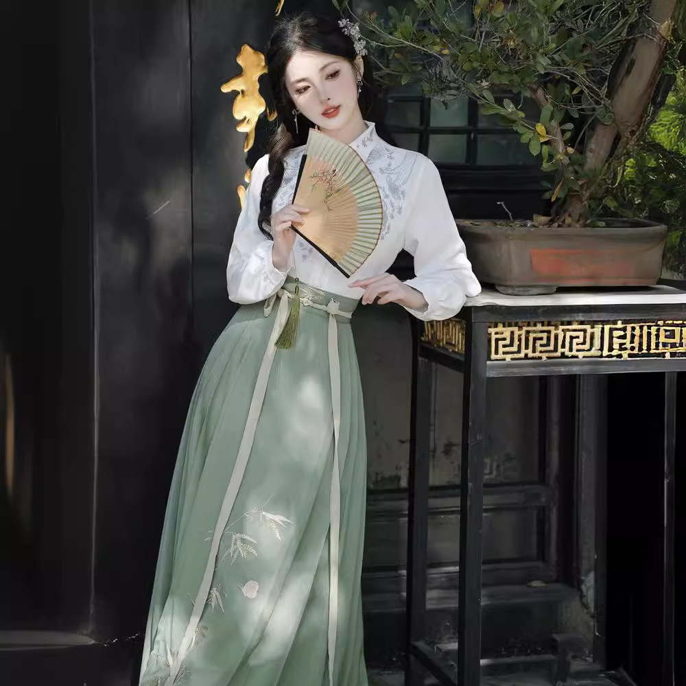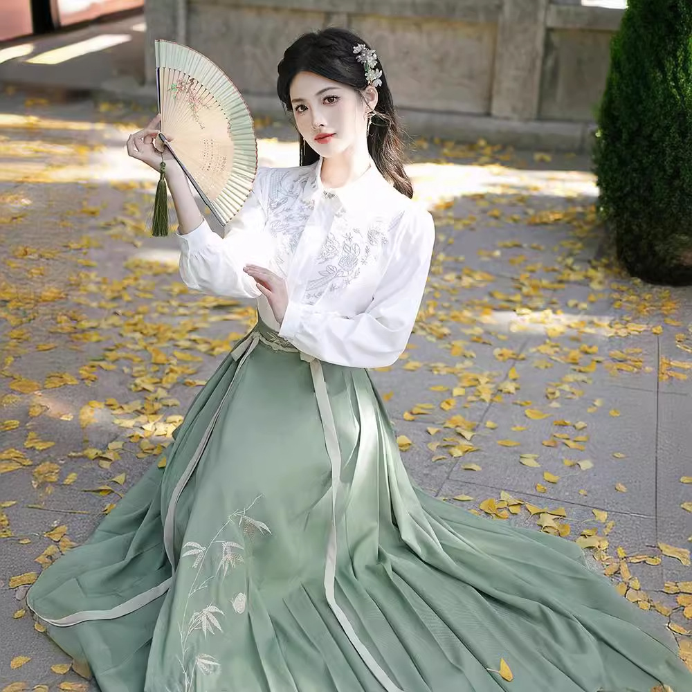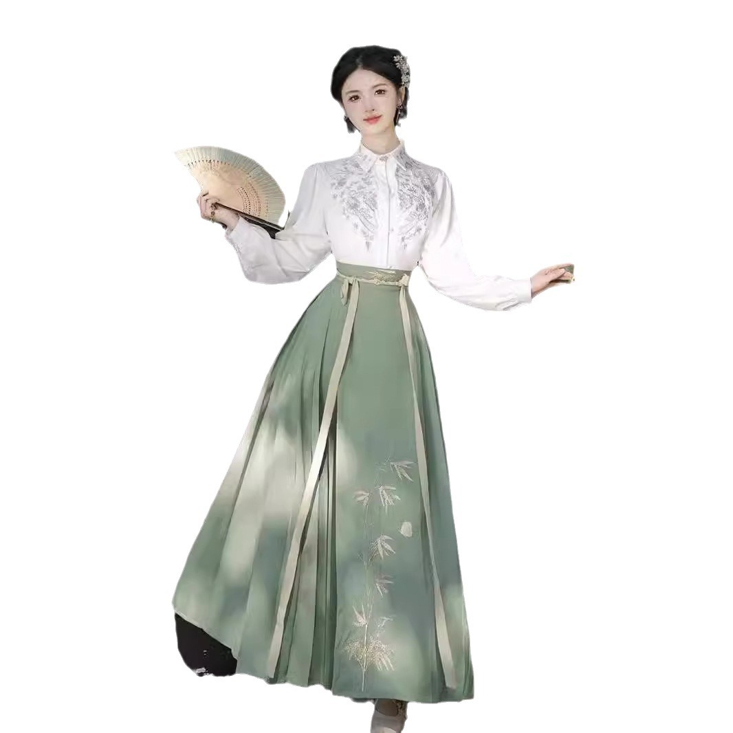 Spring 2024 New Chinese Style Retro Collar Embroidered Improved Hanfu Top Embroidered Horse-faced Skirt Two-piece Suit for Women