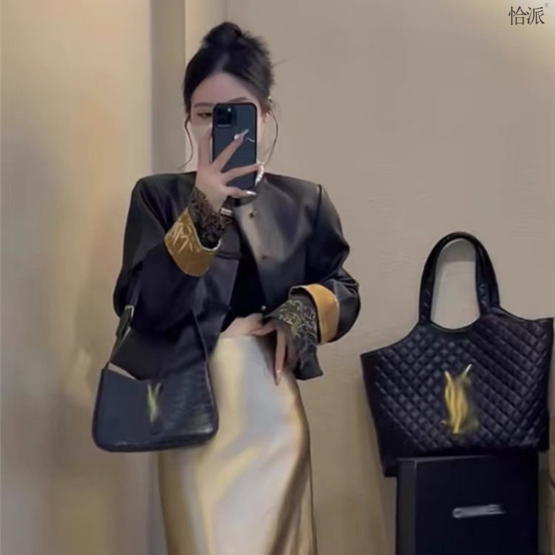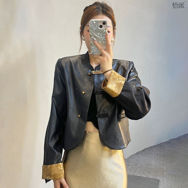 | nameOriginal | Spring 2024 New Chinese Style Retro Soft Protein Leather Short Women's Acetic Acid Stitching Tang Jacket Top Nan |