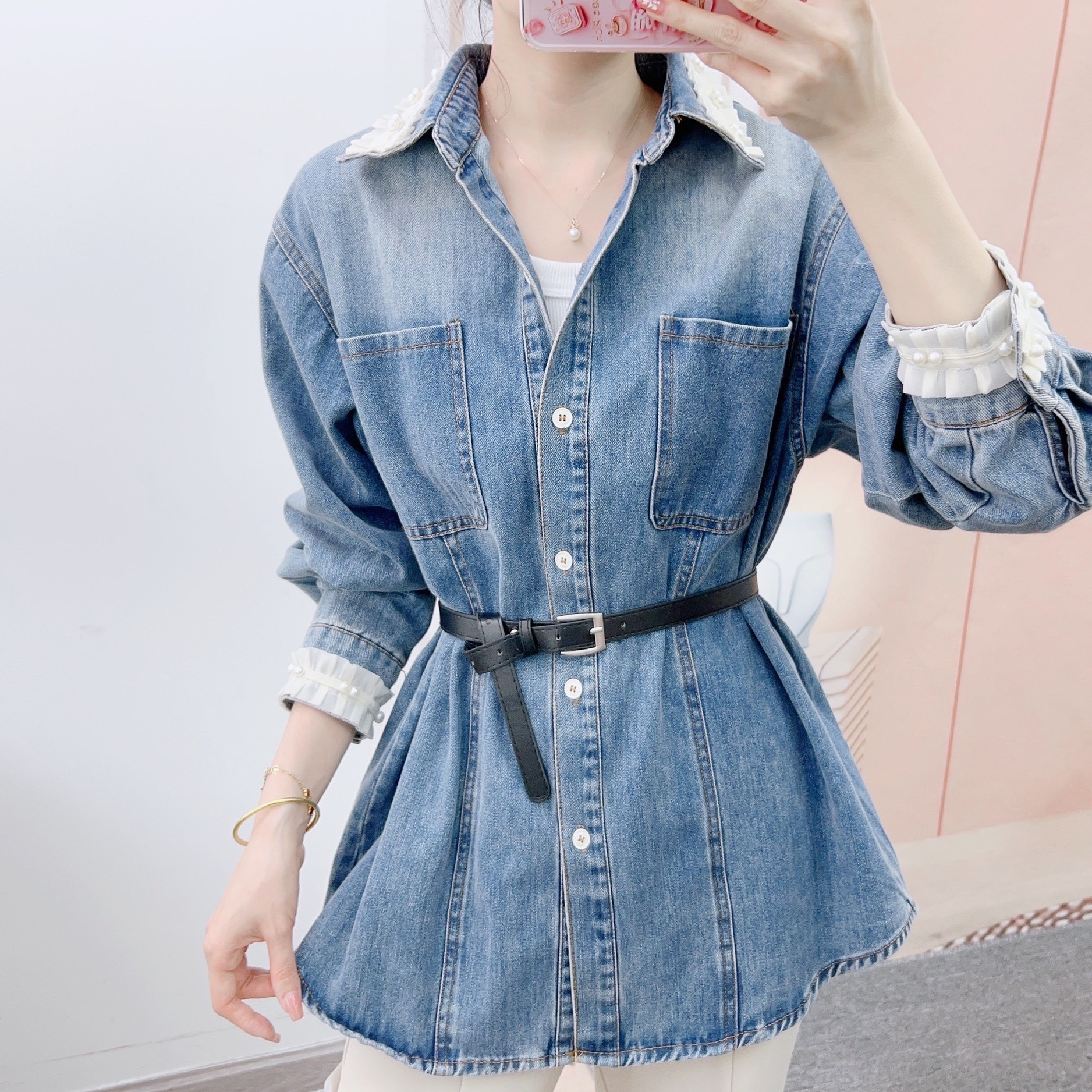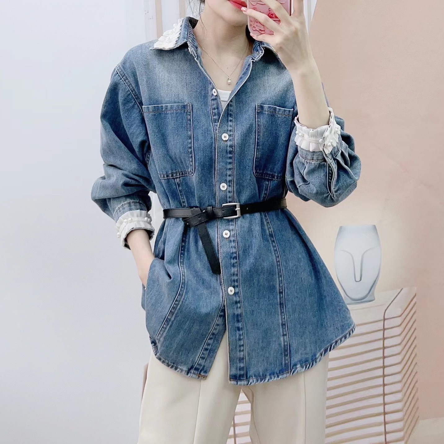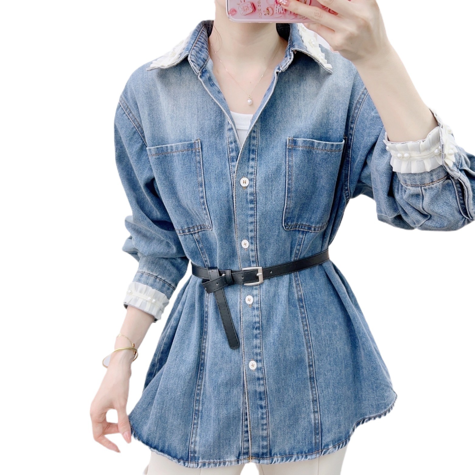 Spring 2024 New Fashion Korean Versatile Long Sleeve Open Button Denim Jacket 602