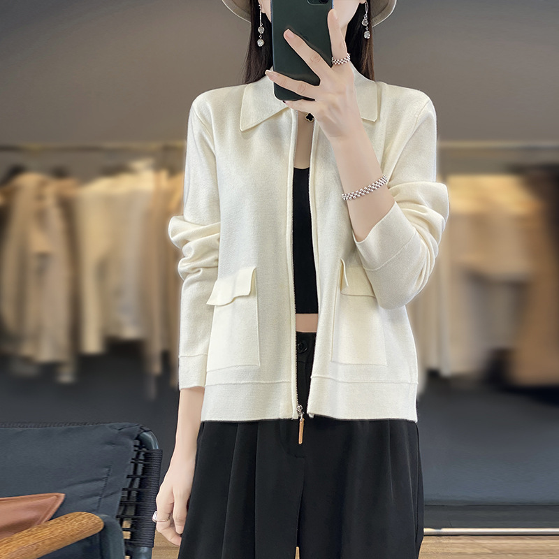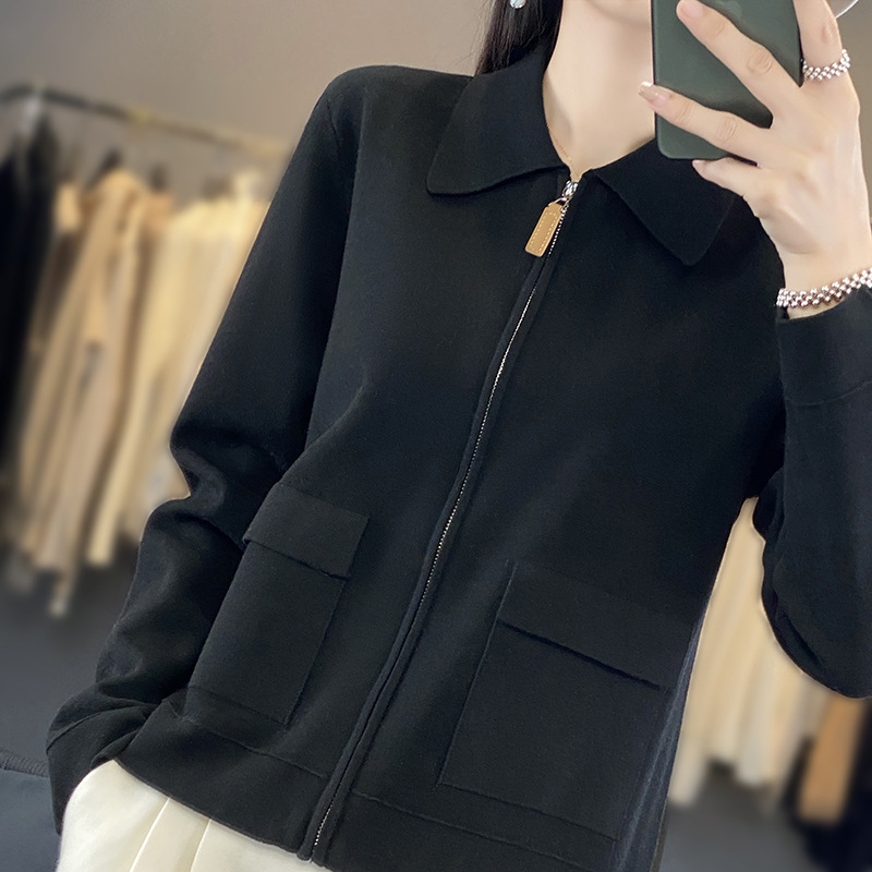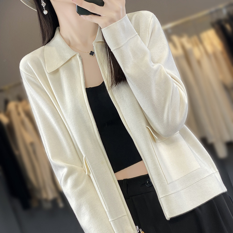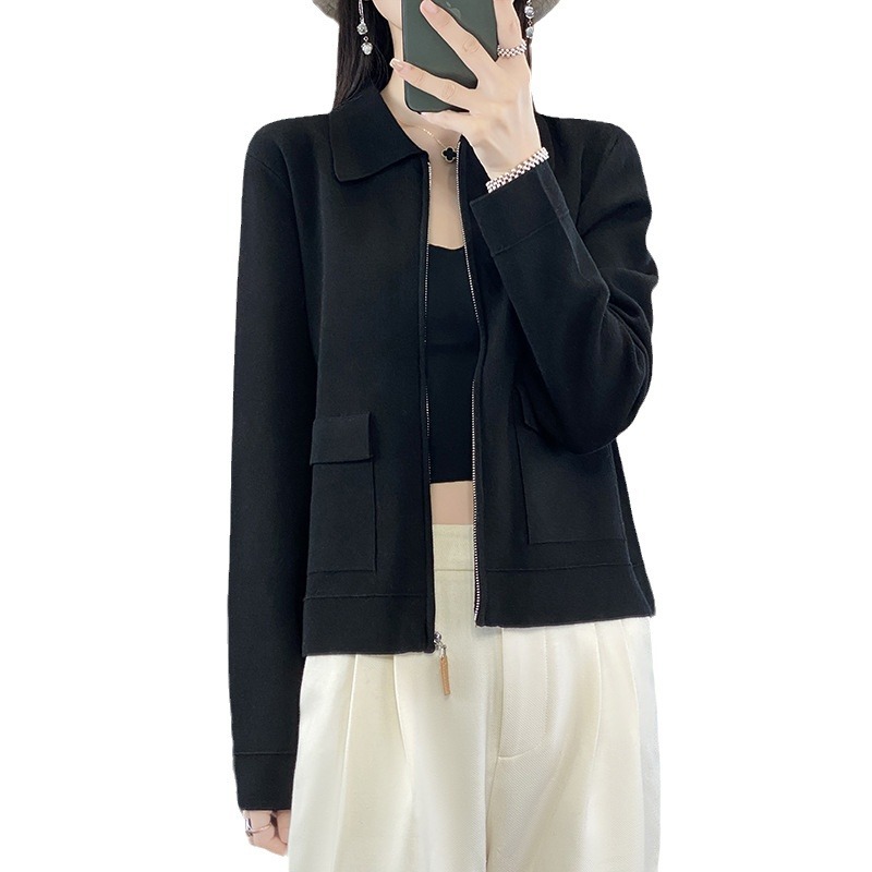 | nameOriginal | Spring 2024 New Polo Collar Wool Sweater Women's Loose Tooling Thin Sunscreen Zipper Cardigan Coat Top |