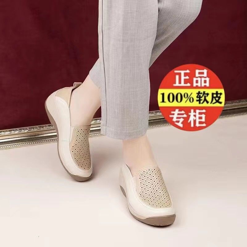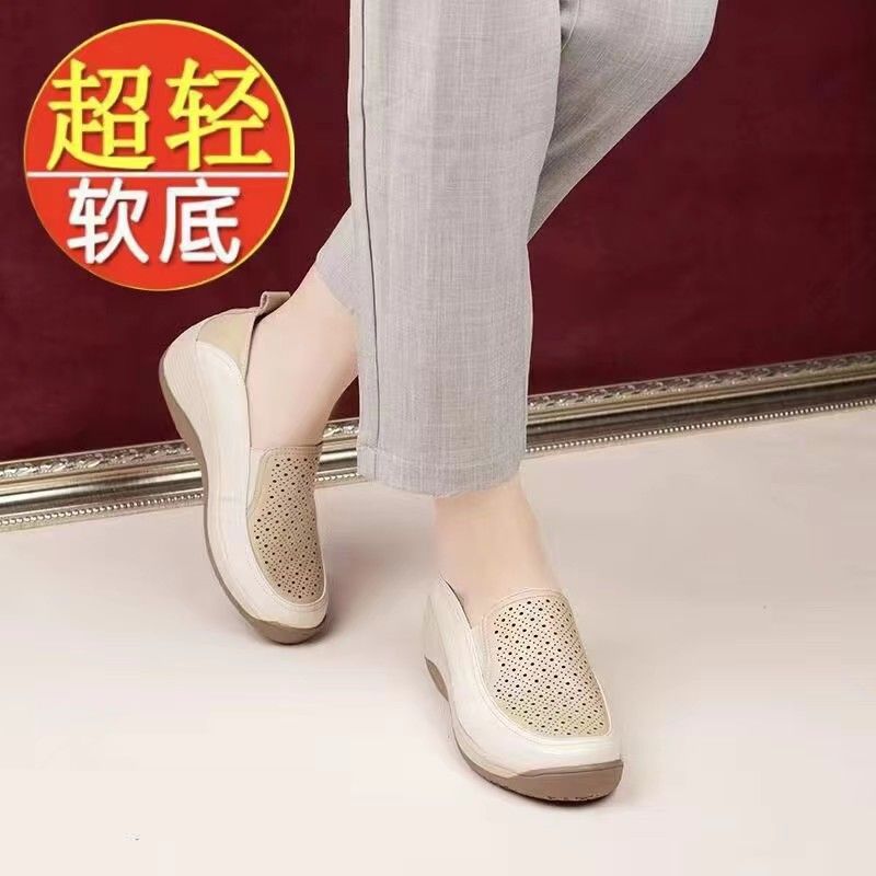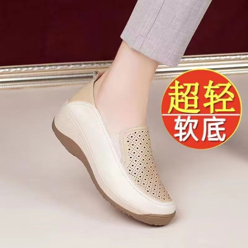 | nameOriginal | Spring 2024 New Real Soft Leather Hollow-out Women's Shoes Thick-soled Loafers Mother's Small Leather Shoes Wedge Shoes Cross-border |