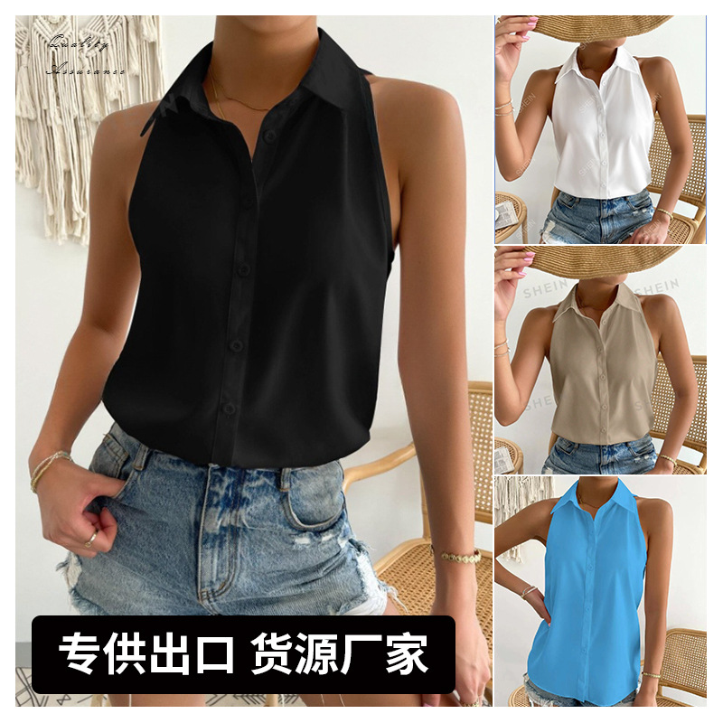 | nameOriginal | Spring 2024 New Satin Sleeveless Shirt Casual Solid Color Summer Shirt Top Supply Factory |