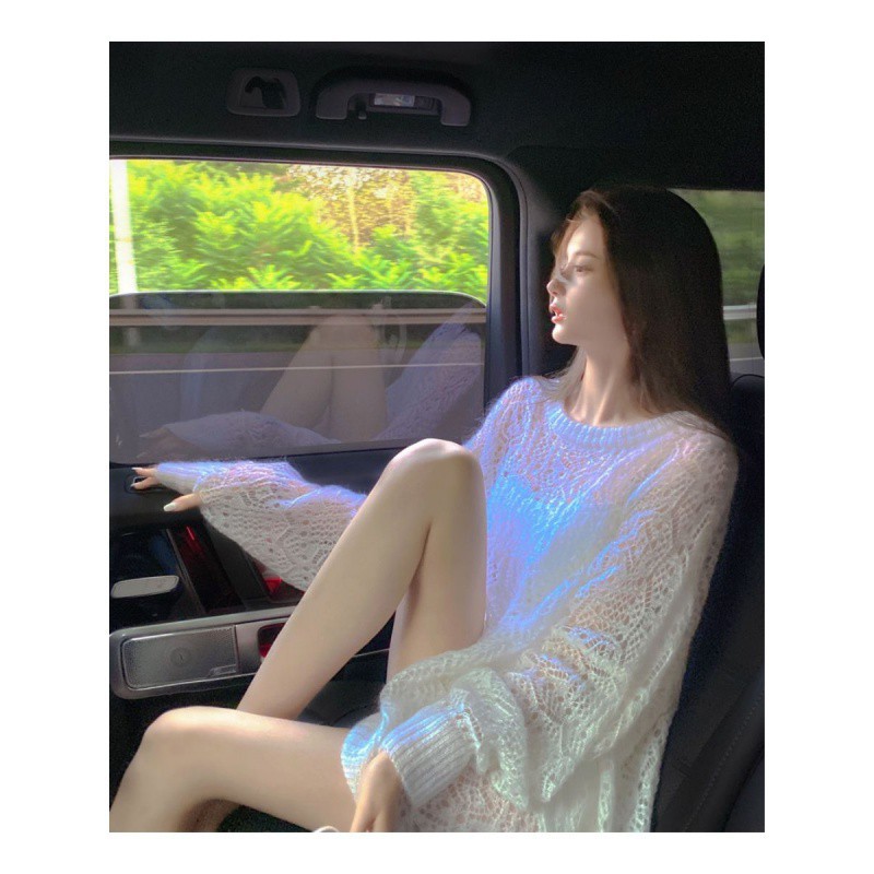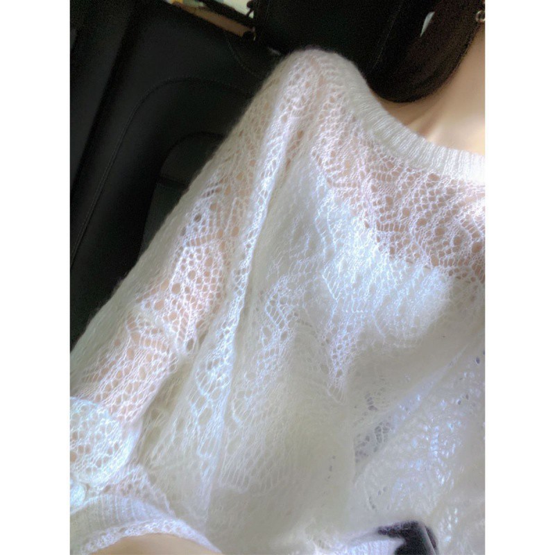 | nameOriginal | Spring 2024 New Soft Waxy Gentle Fairy Style Hollow White Sweater Women's Mid-length Lazy Solid Color Thin Top |