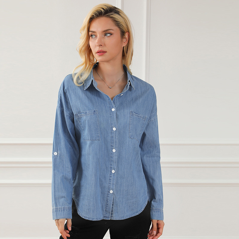 Spring 2024 New Solid Color Long Sleeve Top Women's European and American Fashion All-match Single Row Multi-button Denim Jacket Women
