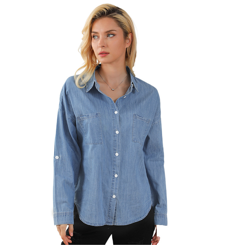 Spring 2024 New Solid Color Long Sleeve Top Women’s European and American Fashion All-match Single Row Multi-button Denim Jacket Women