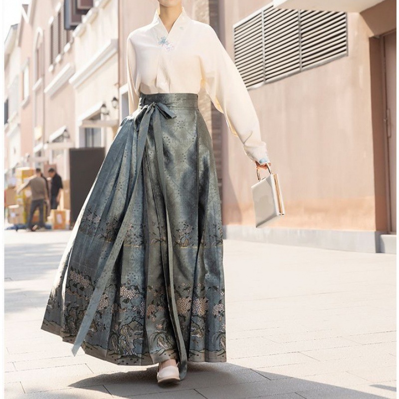 | nameOriginal | Spring 2024 New Style Daily Work Commuter Improved Hanfu Women's Ming Style Lace-up Horse Face Skirt National Style suit |