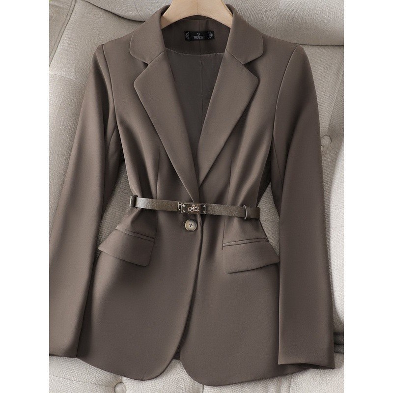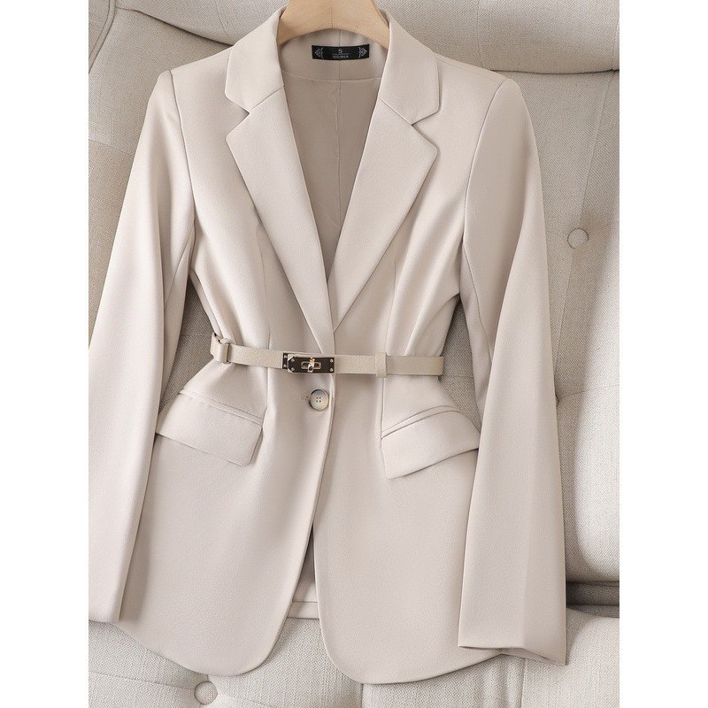 Spring 2024 New Suit Collar Jacket Women's Pure Color Professional Casual Fashion All-match Simple Elegant Small Suit Women