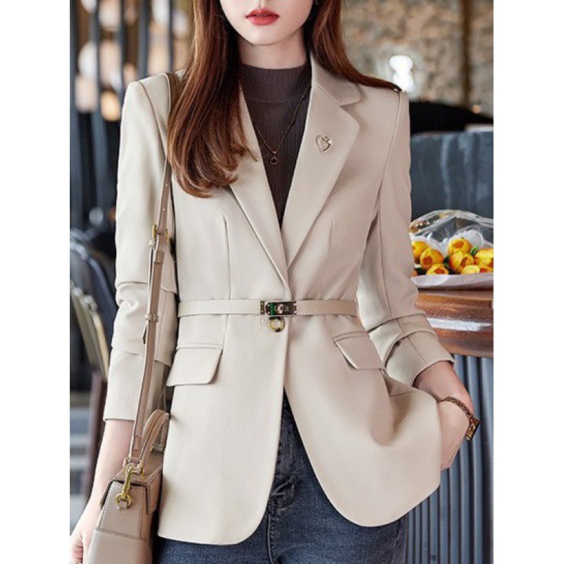 Spring 2024 New Suit Collar Jacket Women’s Pure Color Professional Casual Fashion All-match Simple Elegant Small Suit Women