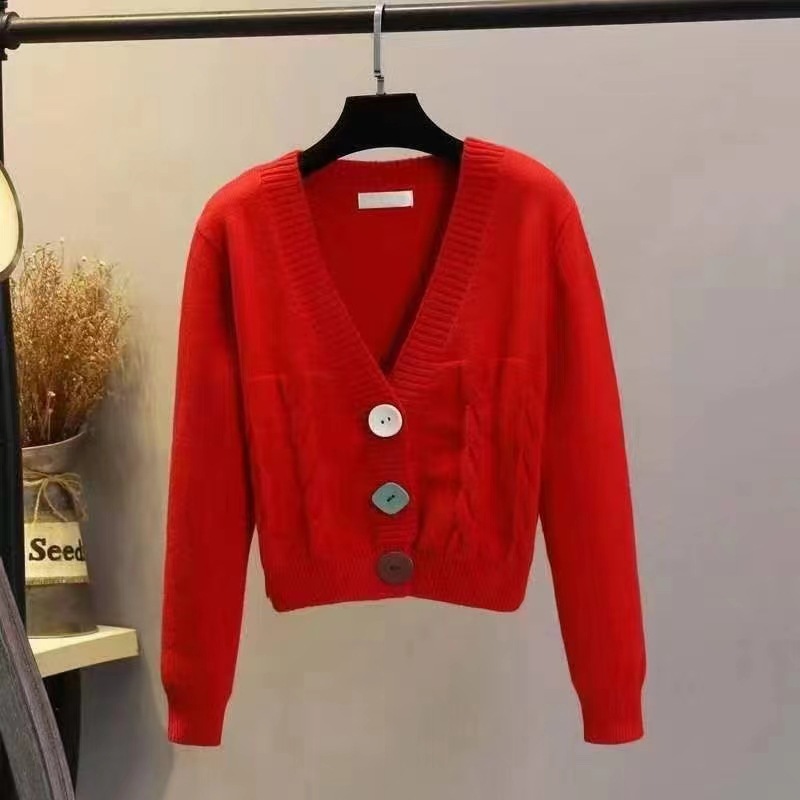 Spring 2024 New Women’s Red Women’s Sweater Knitted Cardigan Early Autumn Top New Small Shirt Coat