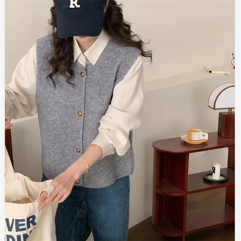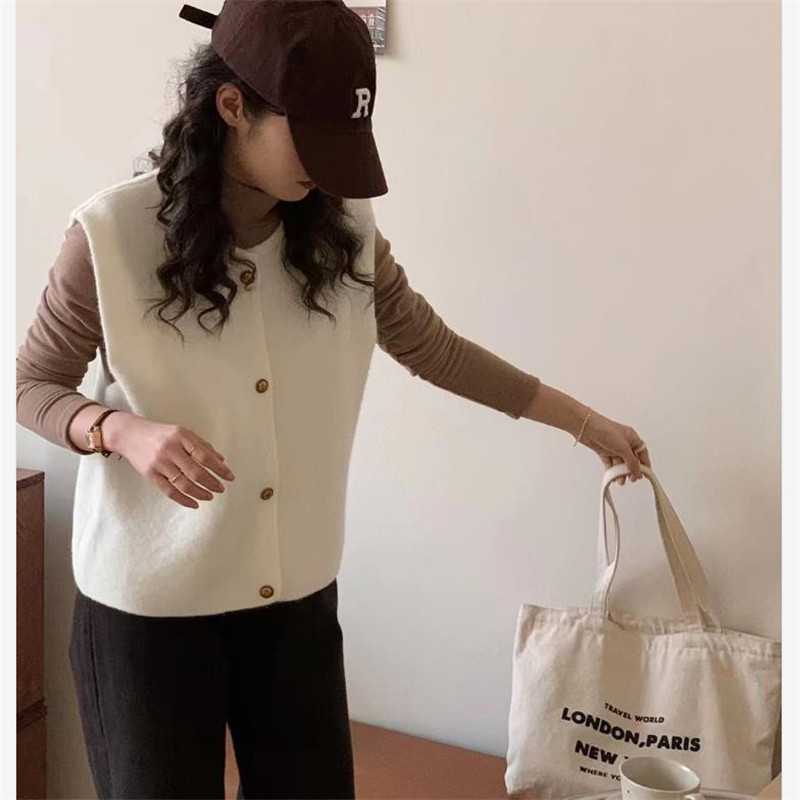 Spring 2024 Round Neck Maillard Sleeveless Vest Cardigan Stacked Waistcoat Women’s Warm Sweater Jacket Knitted Outer Wear