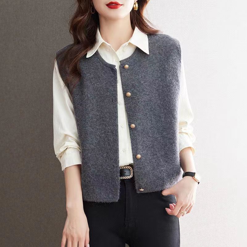 Spring 2024 Round Neck Maillard Sleeveless Vest Cardigan Stacked Waistcoat Women's Warm Sweater Jacket Knitted Outer Wear