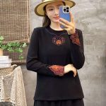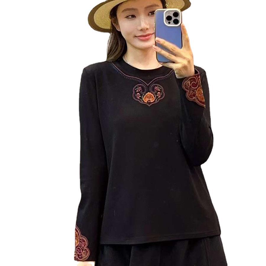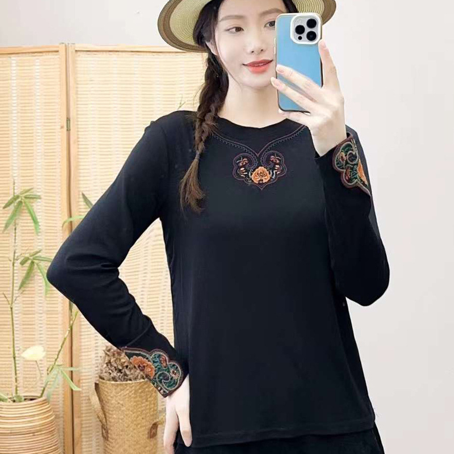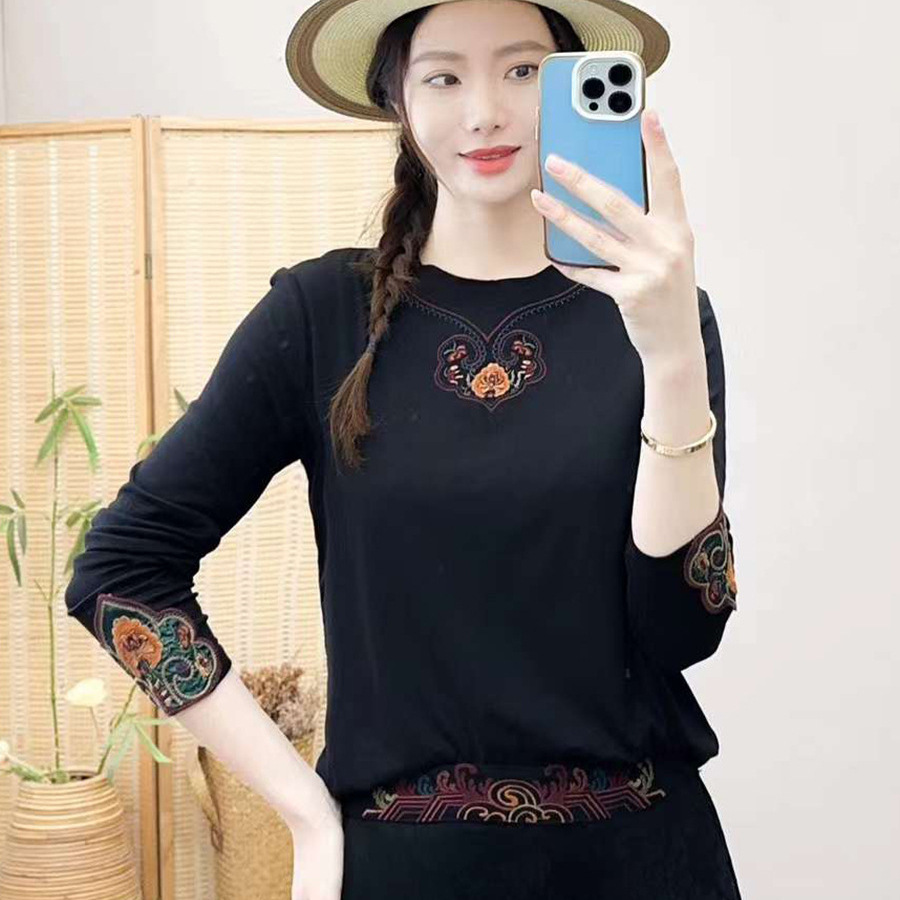 | nameOriginal | Spring 2024 Solid Color Round Neck Long Sleeve Embroidered Loose Model Cotton Women's Ethnic Style Base Shirt |