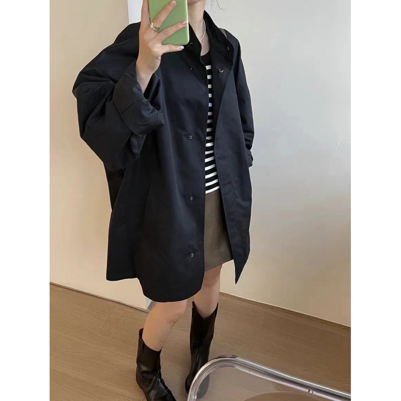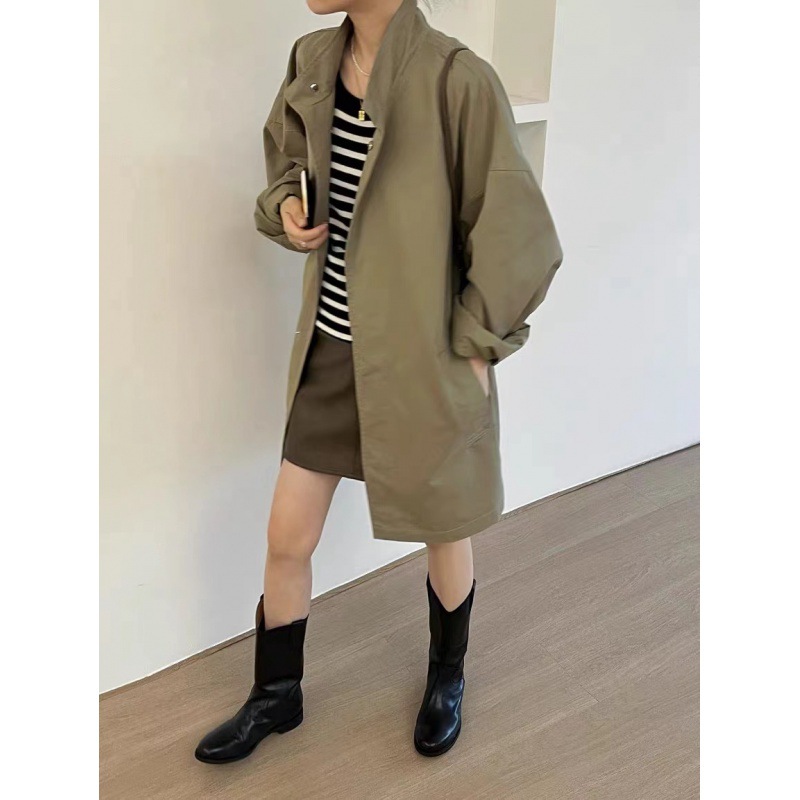 | nameOriginal | Spring 2024 South Korea thin lazy style stand collar loose casual long sleeve mid-length trench coat for women |