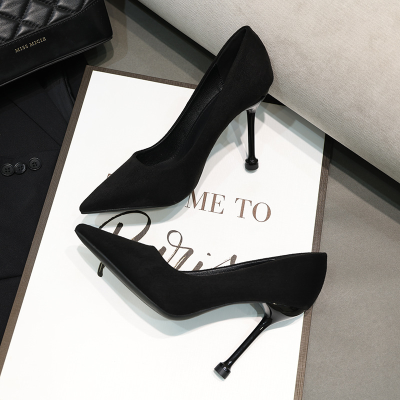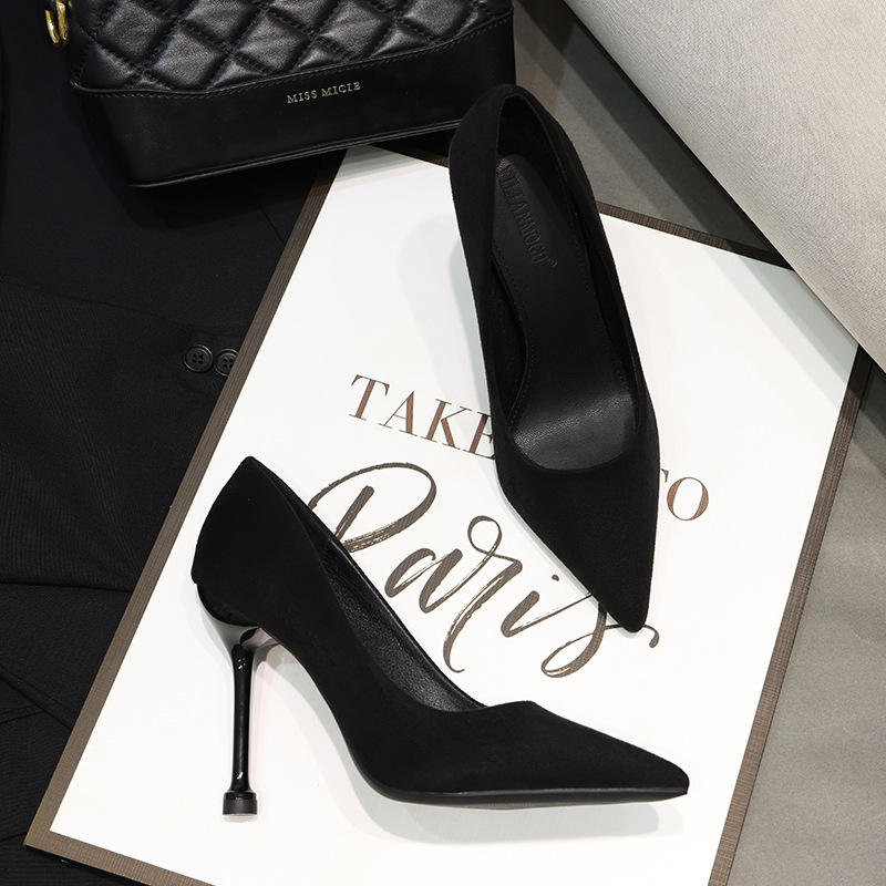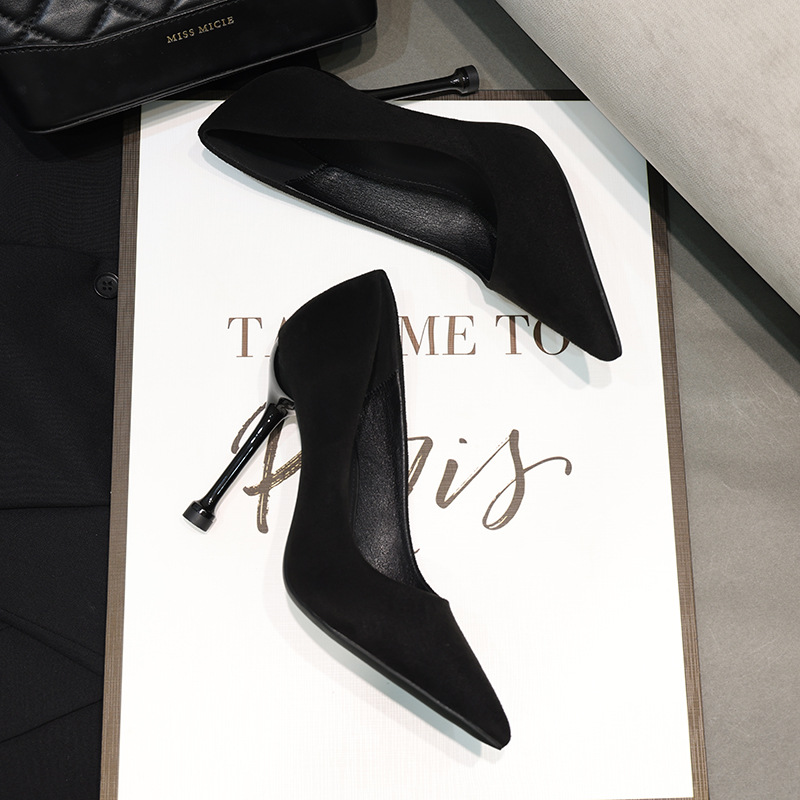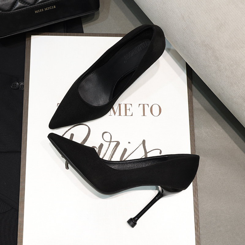 | nameOriginal | Spring 2024 Suede Design Niche Black Professional Pointed Stiletto Heel Women's High Heels All-match Single-layer Shoes Women's Shoes |