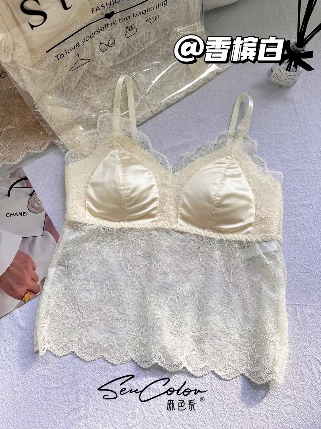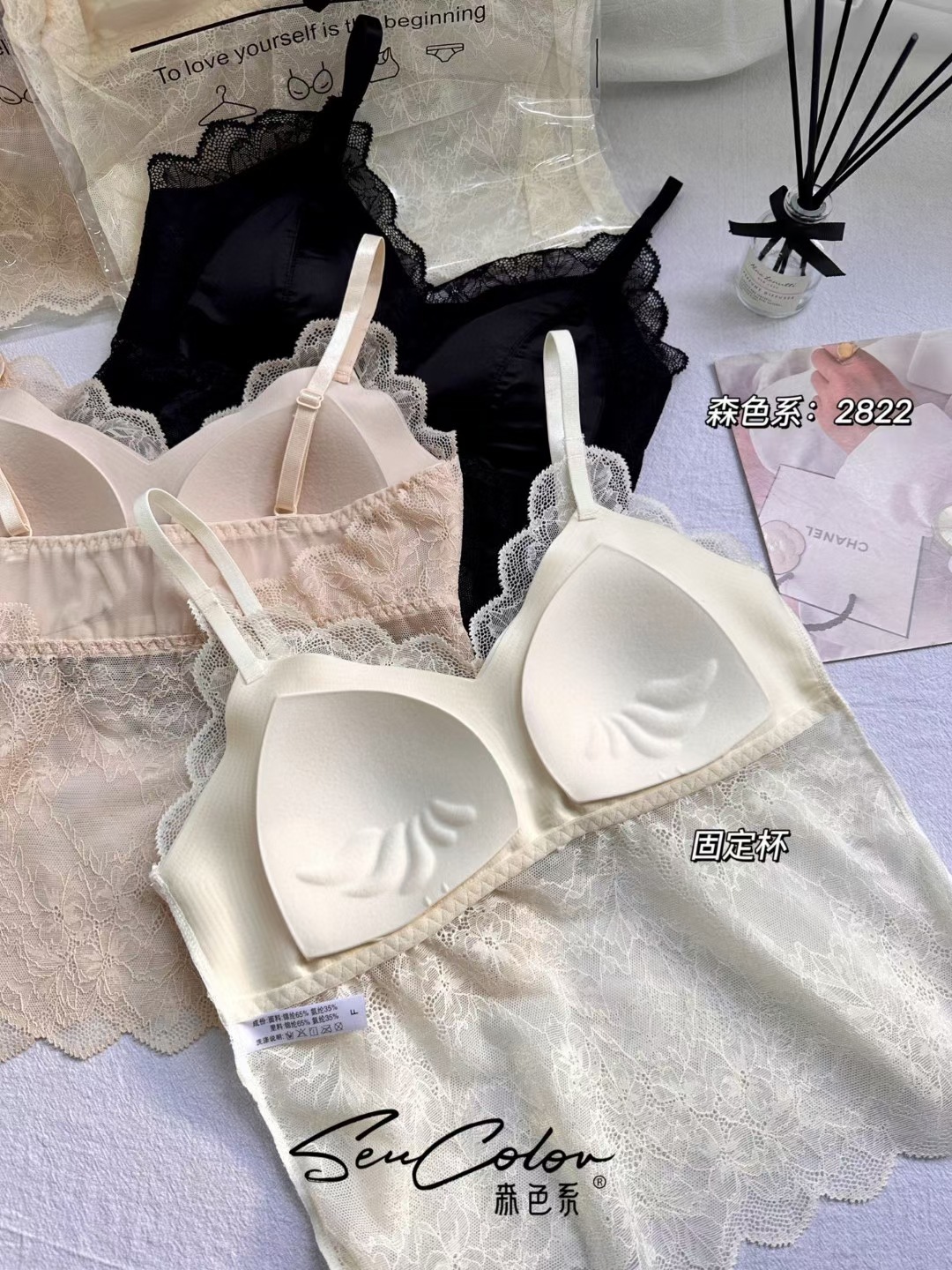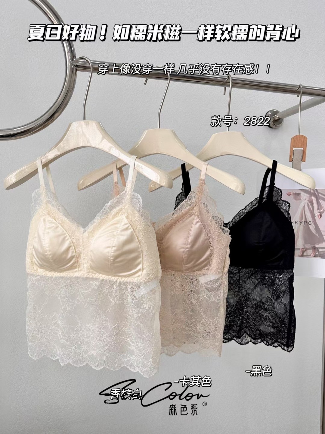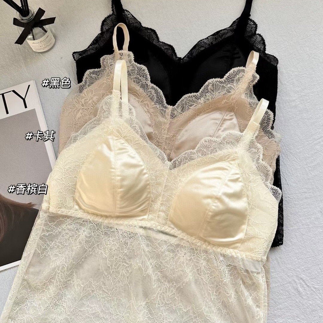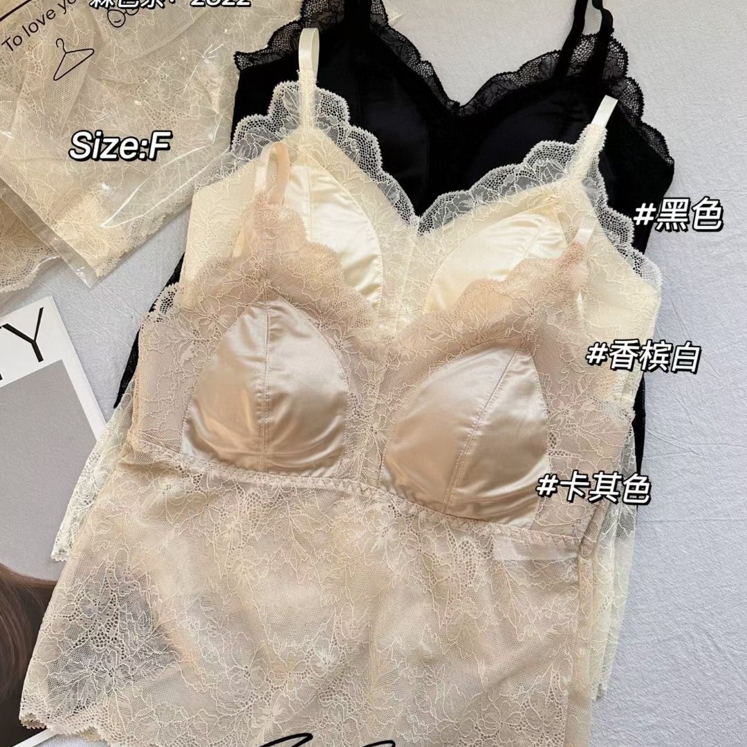 Spring 2822 new French lace underwear wireless beauty back bra strap chest pad vest inner base wrapped chest