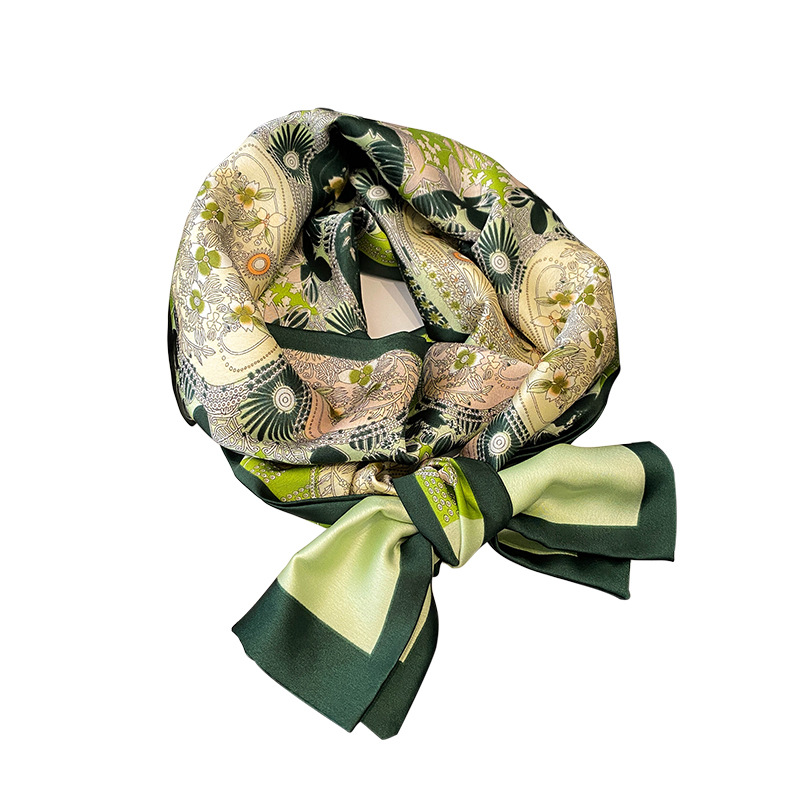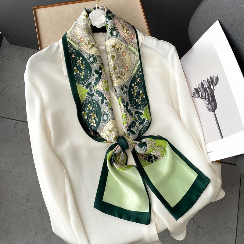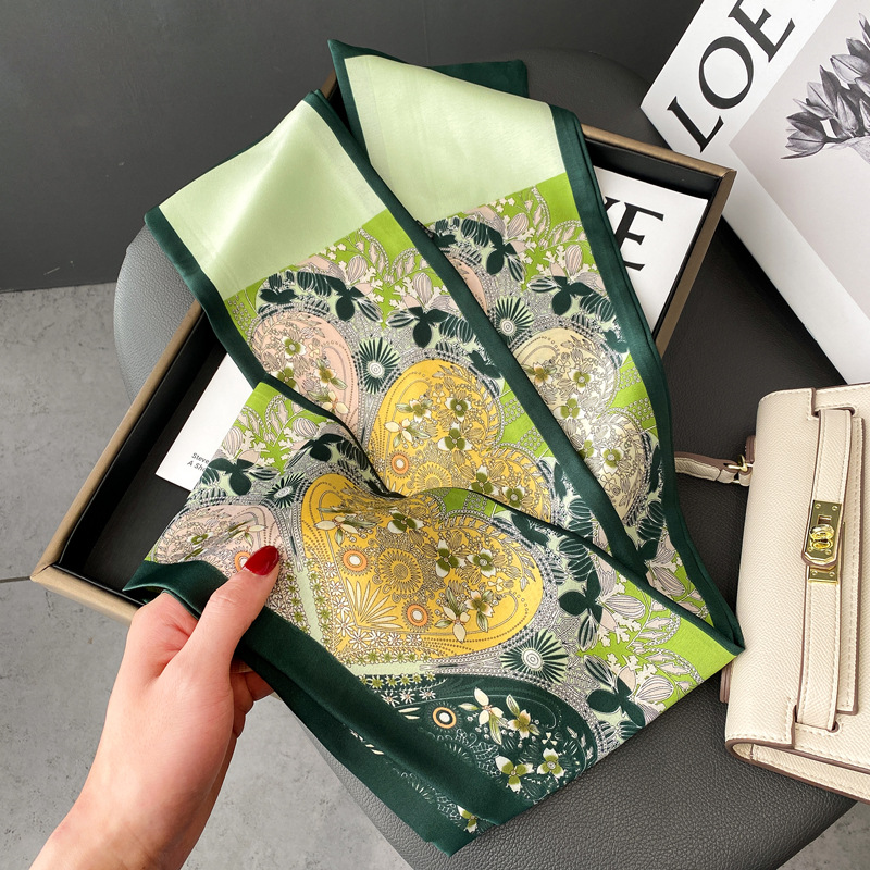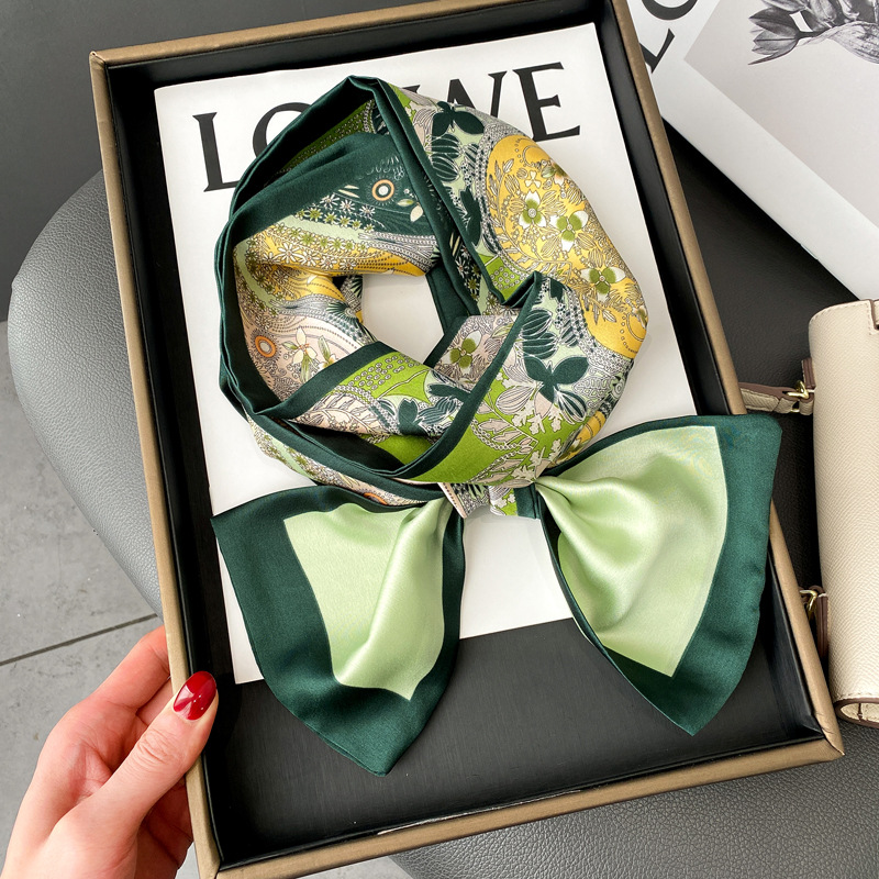 Spring all-match green jungle artificial silk scarf women’s long scarf tied bag ribbon thin narrow scarf
