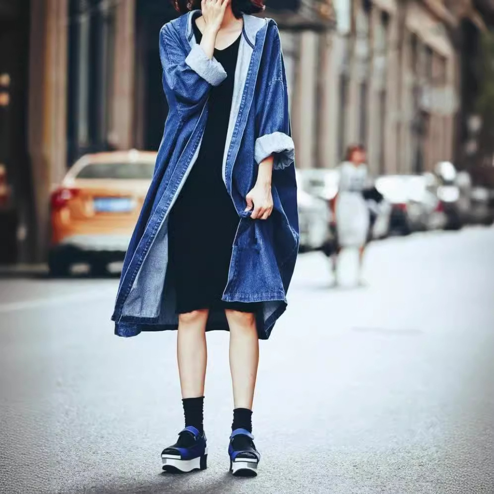 | nameOriginal | Spring and Autumn 2022 New European and American Style Casual Loose Over-the-Knee Coat Hooded Denim Coat for Women |