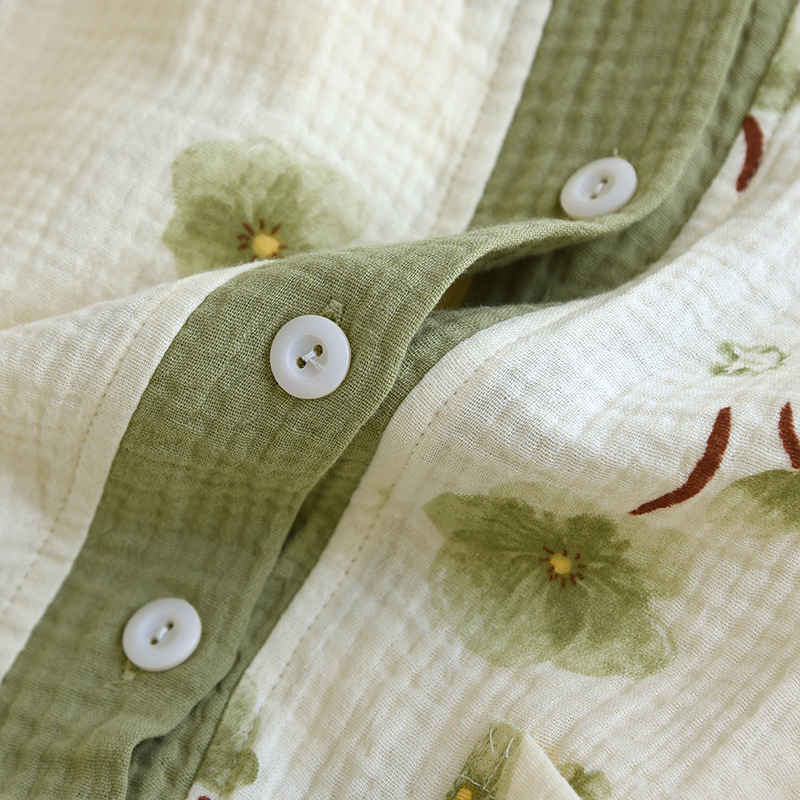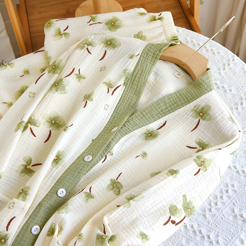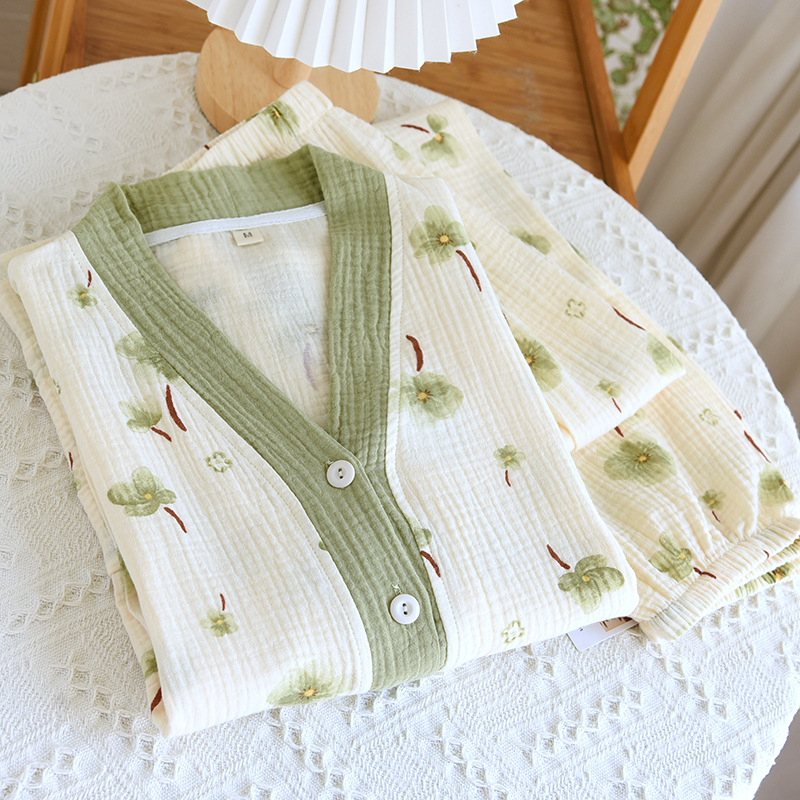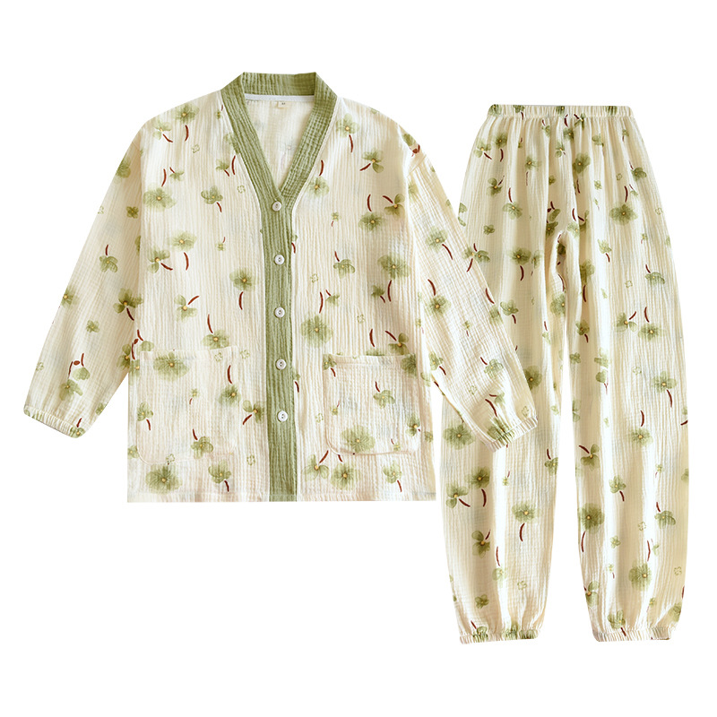 | nameOriginal | Spring and Autumn 2023 Women's Pajamas Long-sleeved Trousers Cotton Crepe Double-layer Yarn Cardigan V-neck Home Clothes Set for Generation |