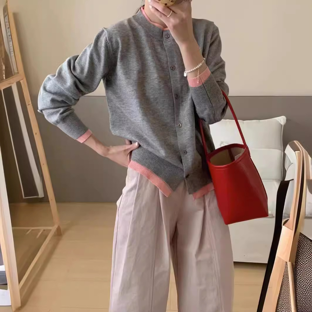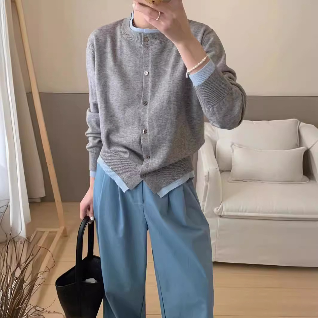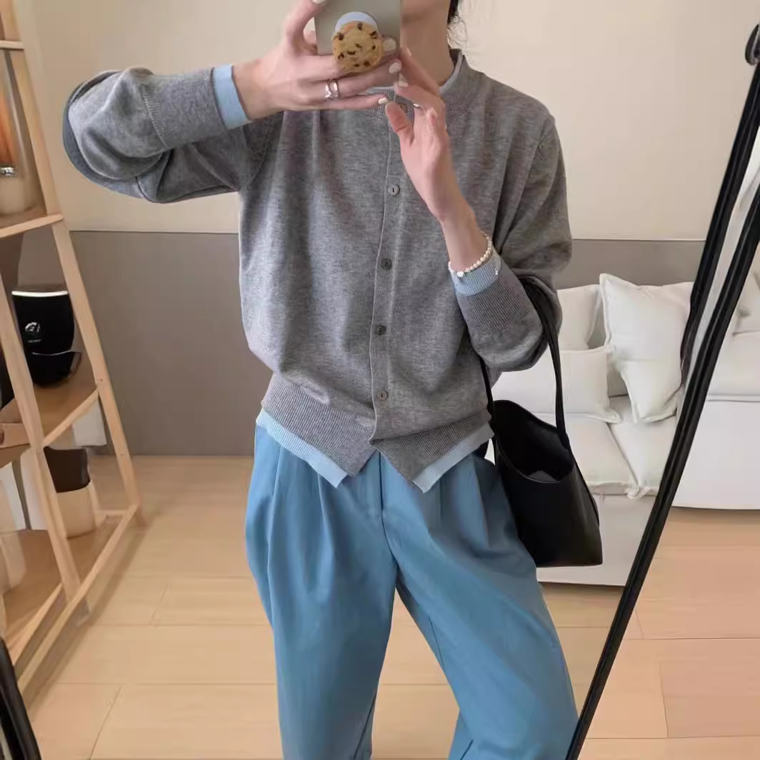 | nameOriginal | Spring and Autumn 2024 Korean Style Elegant Fake Two-piece Knitted Cardigan Women's Casual All-match Contrast Color Stitching Sweater Coat Trendy |